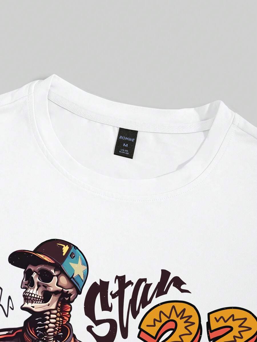 Street Life Men's Summer Skull Letter Print Round Neck Short Sleeve Casual T-Shirt And Drawstring Waist Shorts Set, School