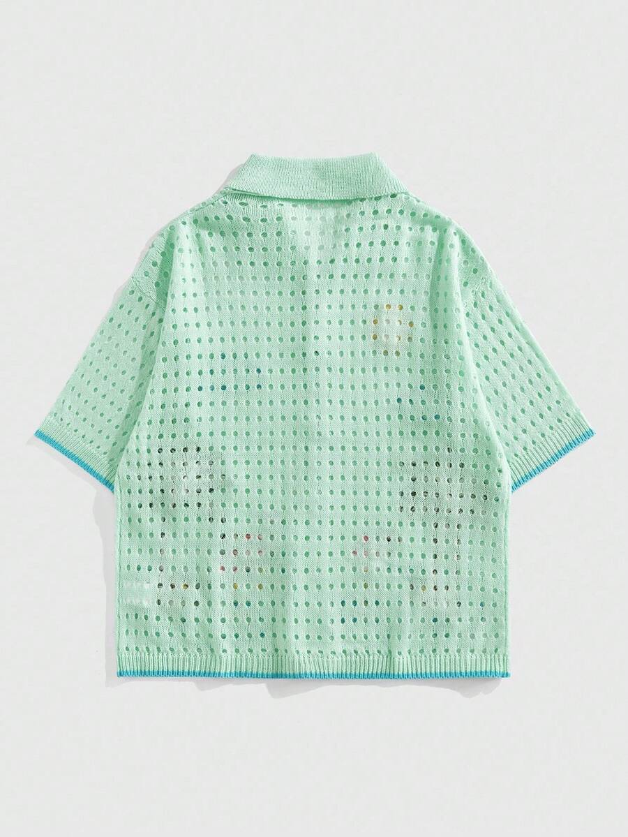 Street Life Men's Summer Vacation Beach Coconut Tree Embroidered Hollow Out Knit Sweater