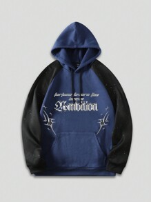 Street Life Men's Thermal Lined Hoodie With Slogan Print And Contrast Color, Suitable For Everyday Wear, Autumn/Winter