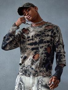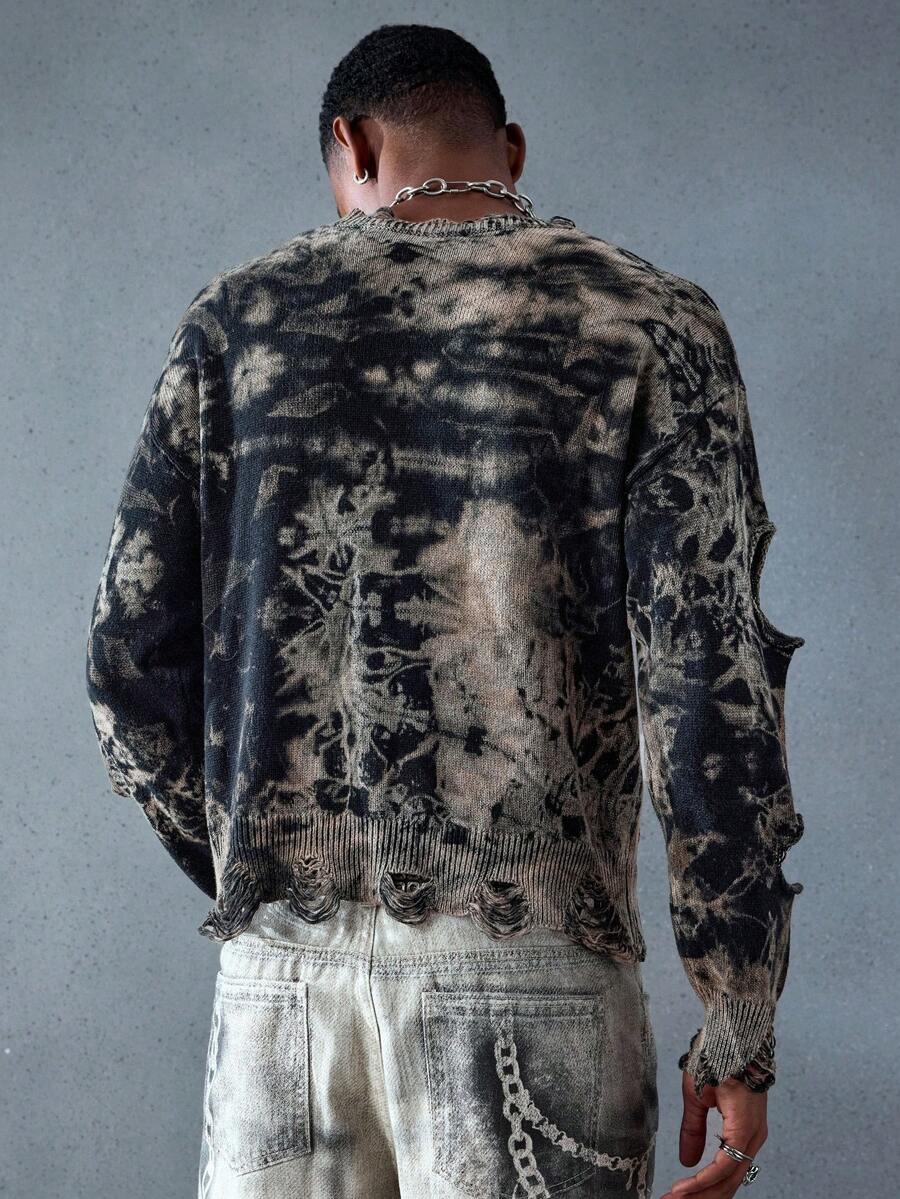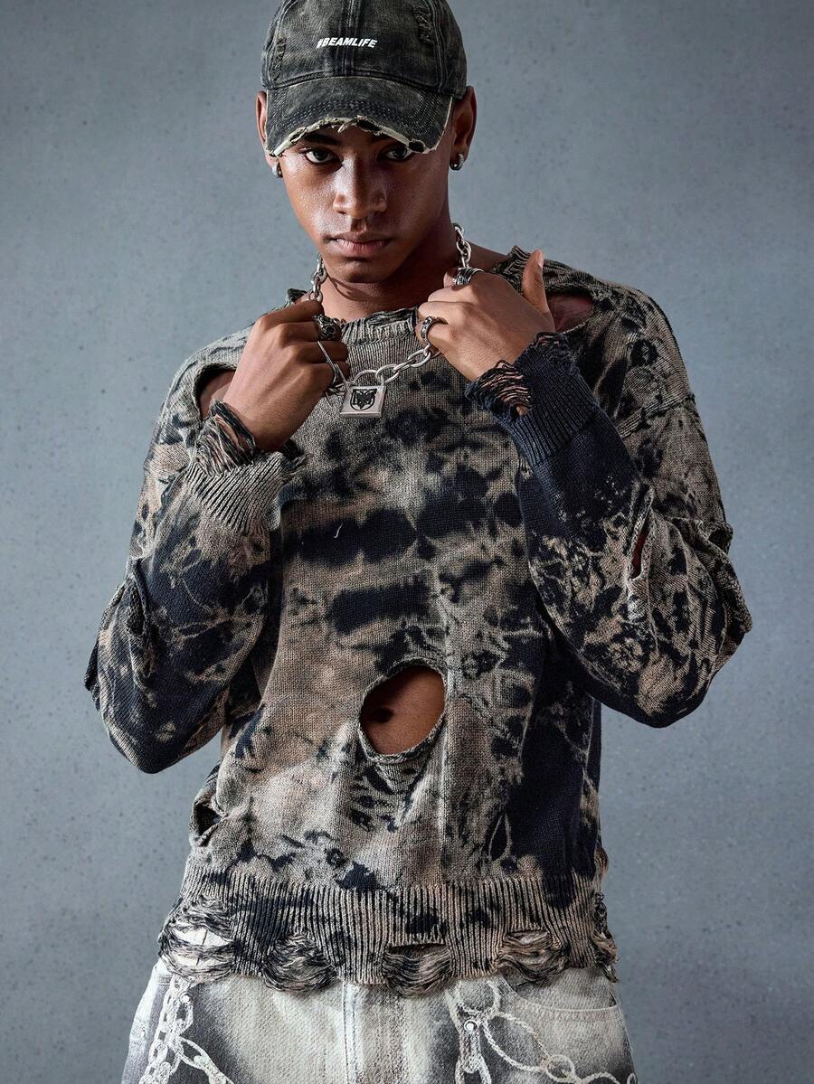 Street Life Men's Tie-Dye Pattern Random Distressed Punk Distressed Ripped Sweater