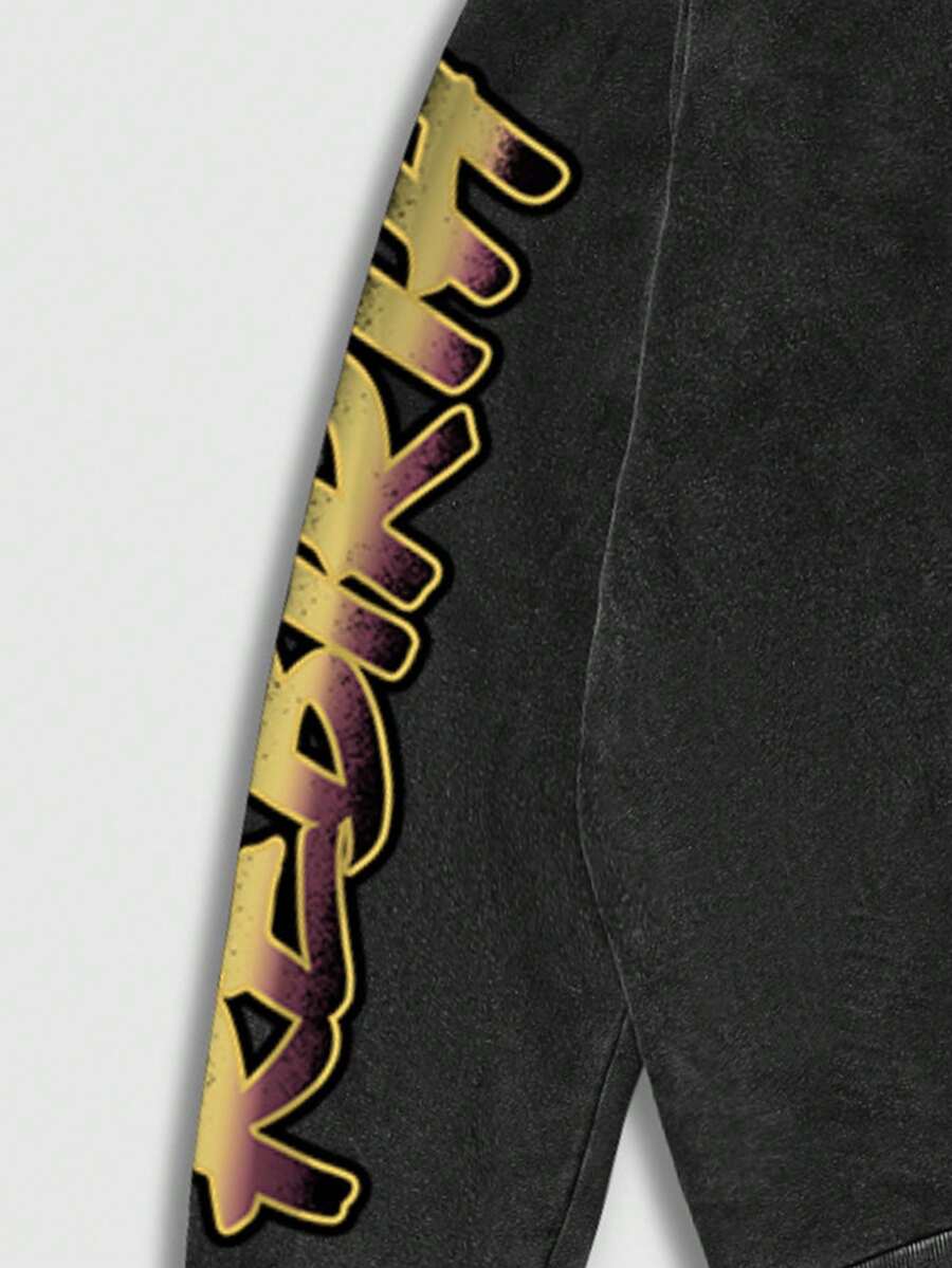 Street Life Men's Vintage Print Washed Distressed Hoodie