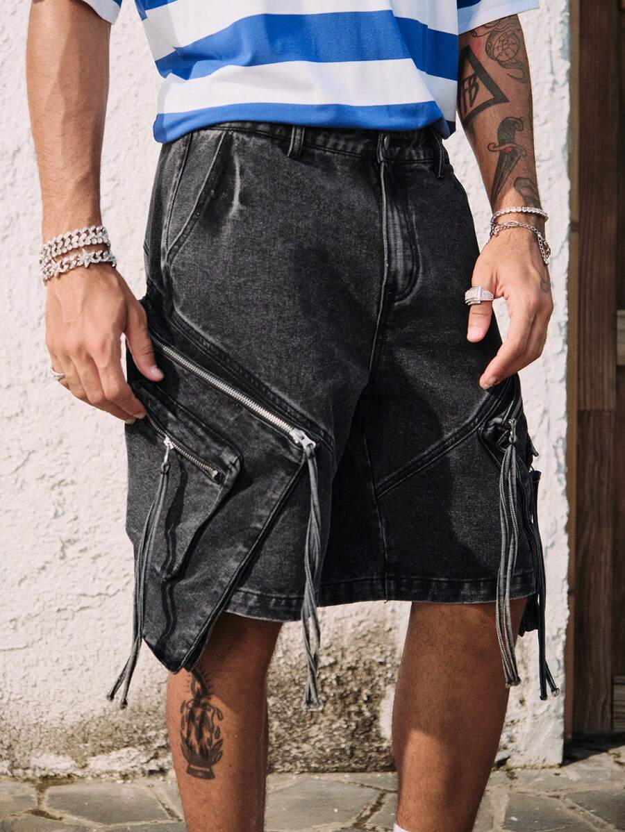 Street Life Men's Washed Big Pocket Denim Shorts Jorts, Vintage Street Style