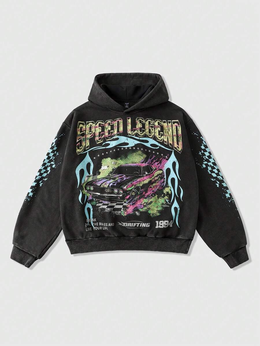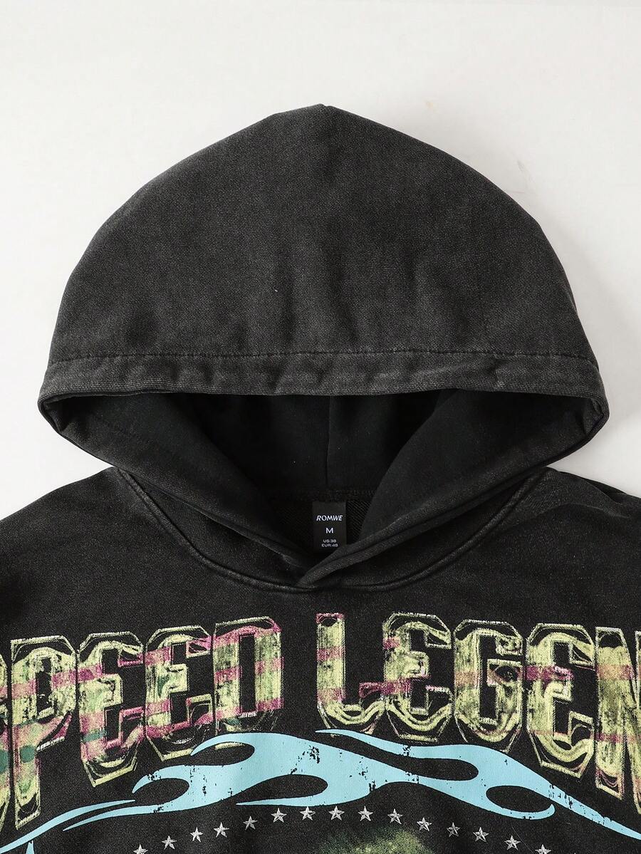 Street Life Men's Washed Vintage Short Hoodie, Streetwear Style, Long Sleeve Top