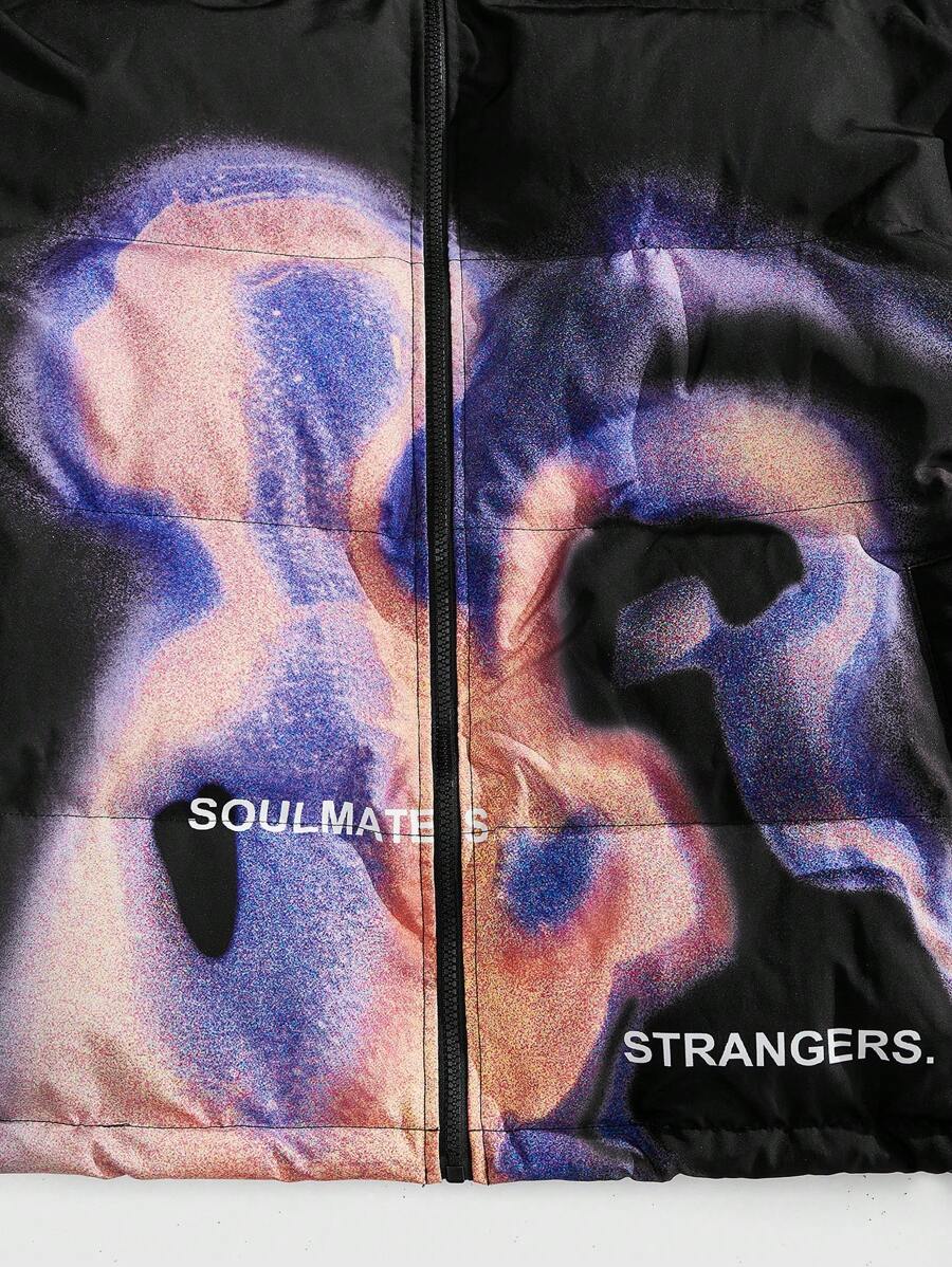 Street Life Men's Winter Loose Fit Letter & Shadow Graphic Padded Sweatshirt, Street Style