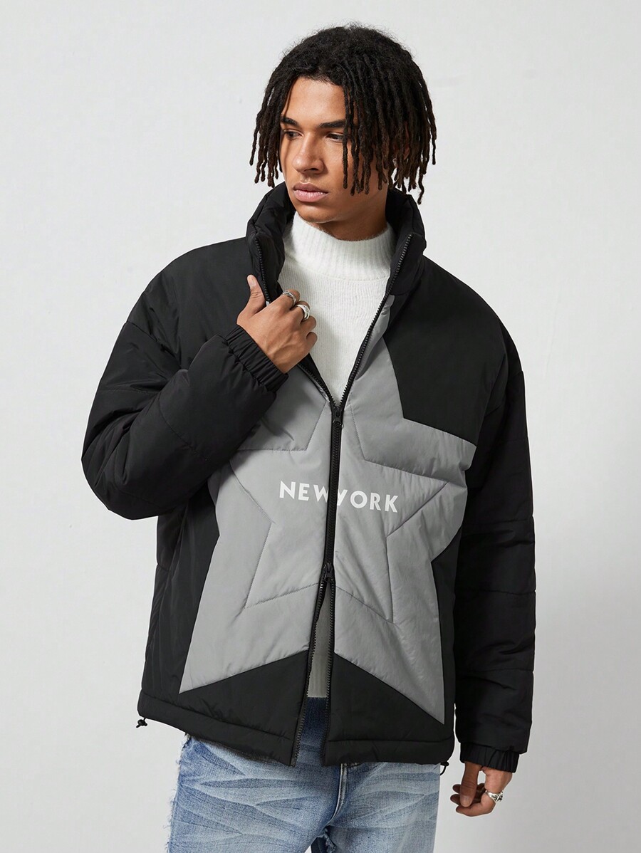 Street Life Men's Winter Star & Letter Print Zip-Up Fleece Jacket