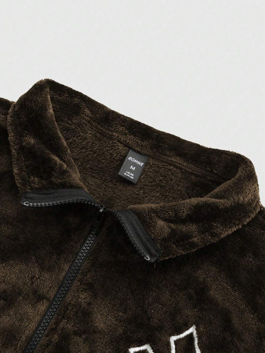 Street Life Men's Zip Front Stand Collar Long Sleeve Letter Print Detail Casual Jacket
