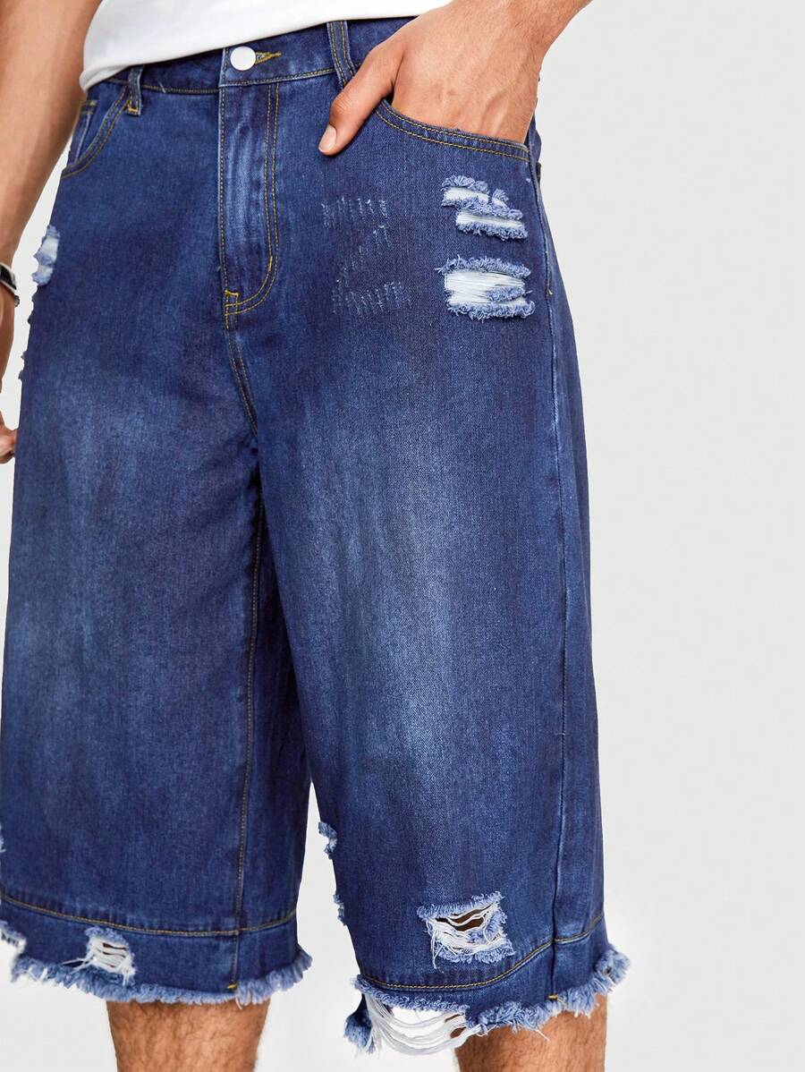 Street Life Men's Zipper Fly Distressed Frayed Edge Jeans