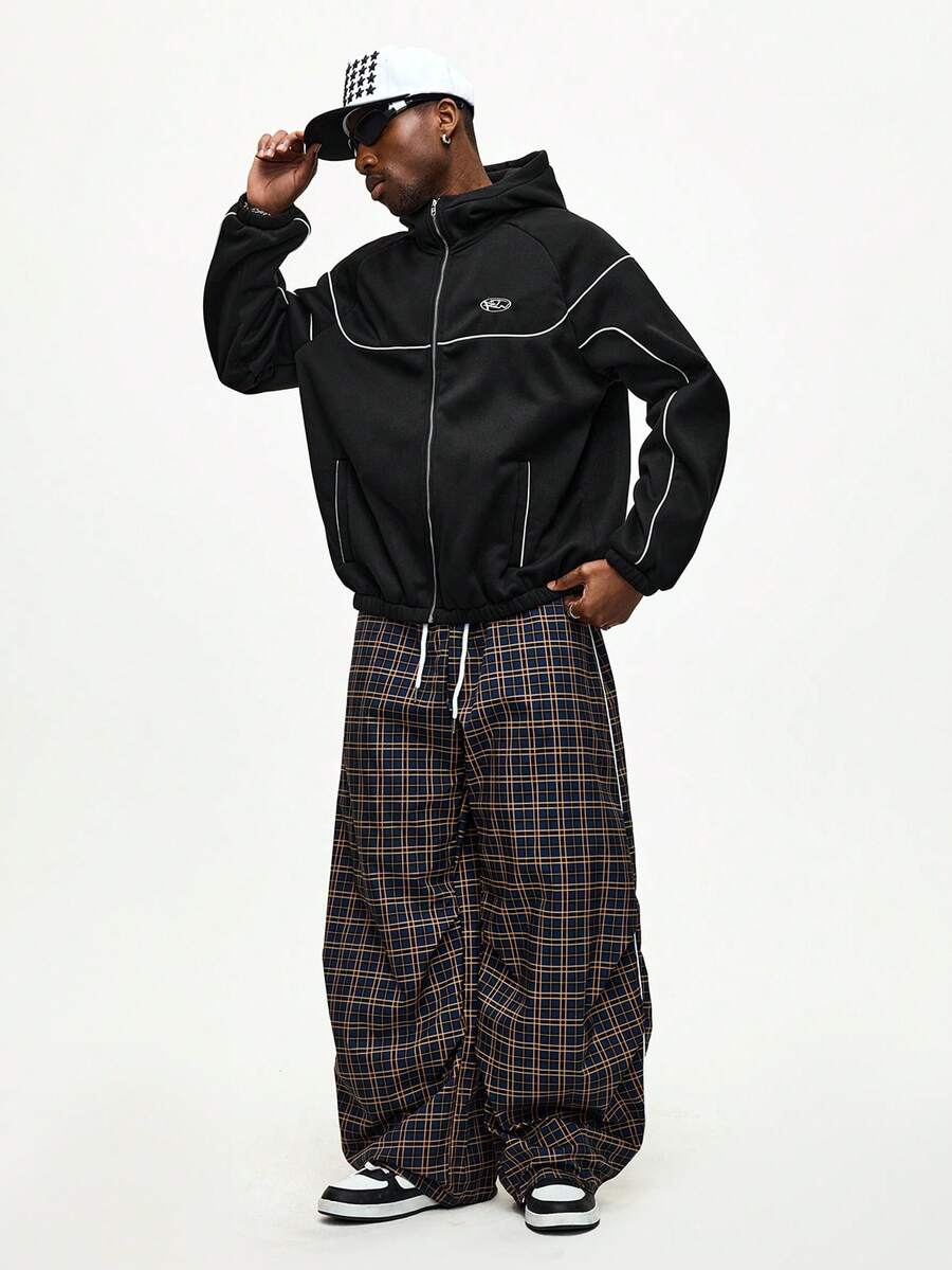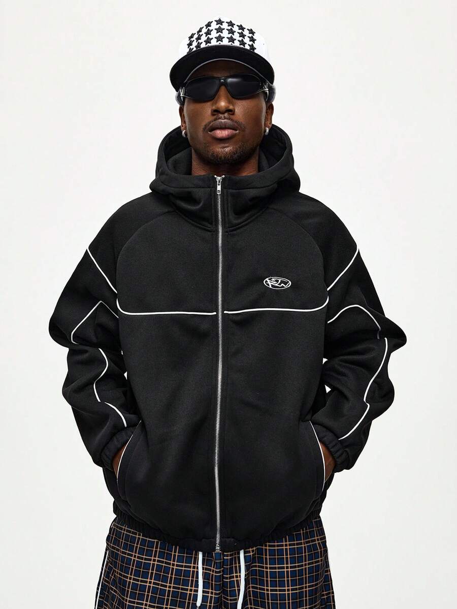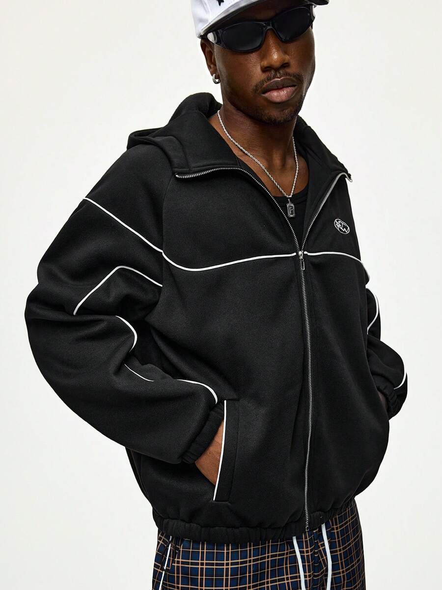 Street Life Men's Zipper Front Casual Contrast Stripe Hoodie Sweatshirt