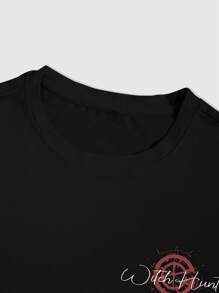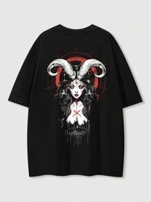 Street Life Plus Size Women Gothic Demon Horn Print T-Shirt, Suitable For Spring And Summer