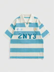 Street Life Preppy Men's Striped Jacquard Knit Polo Sweater