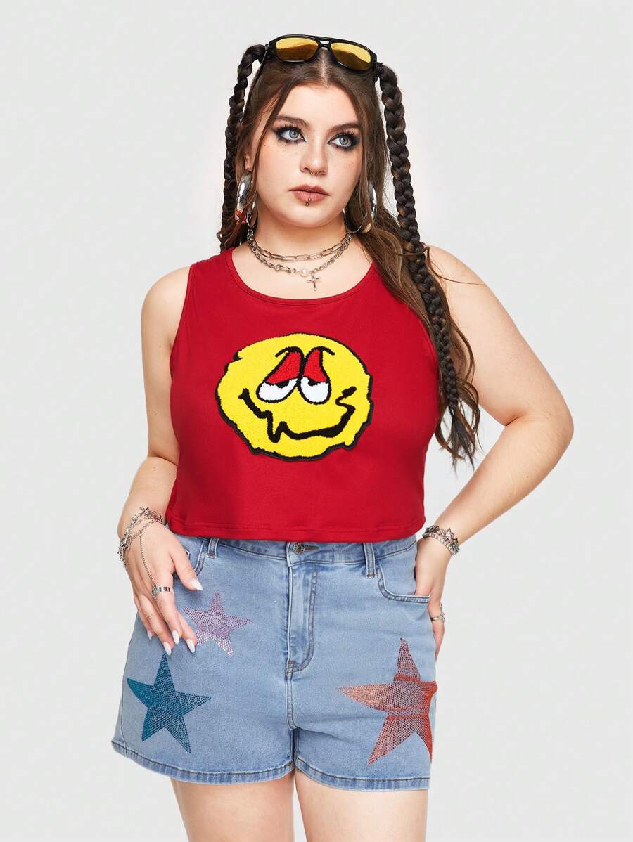 Street Life Quirky Street Style Embroidery Towel Face Graphic Tank Top For Summer For Women Plus Size