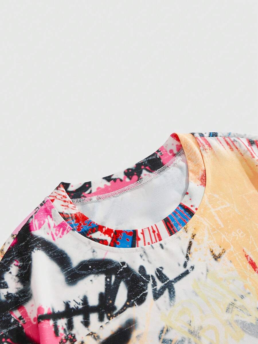 Street Life Street Graffiti Letter Print Casual Round Neck Short Sleeve T-Shirt For Men