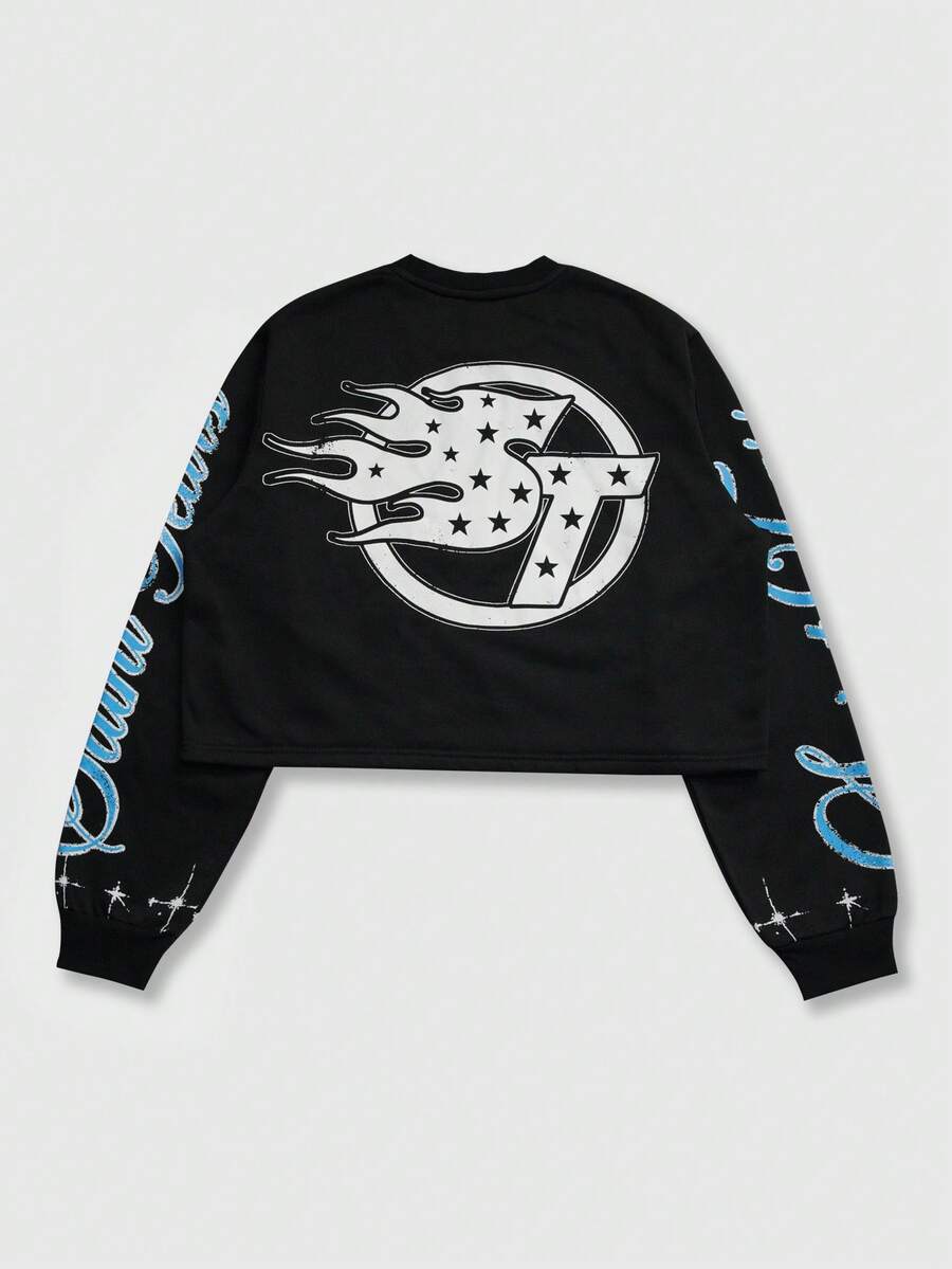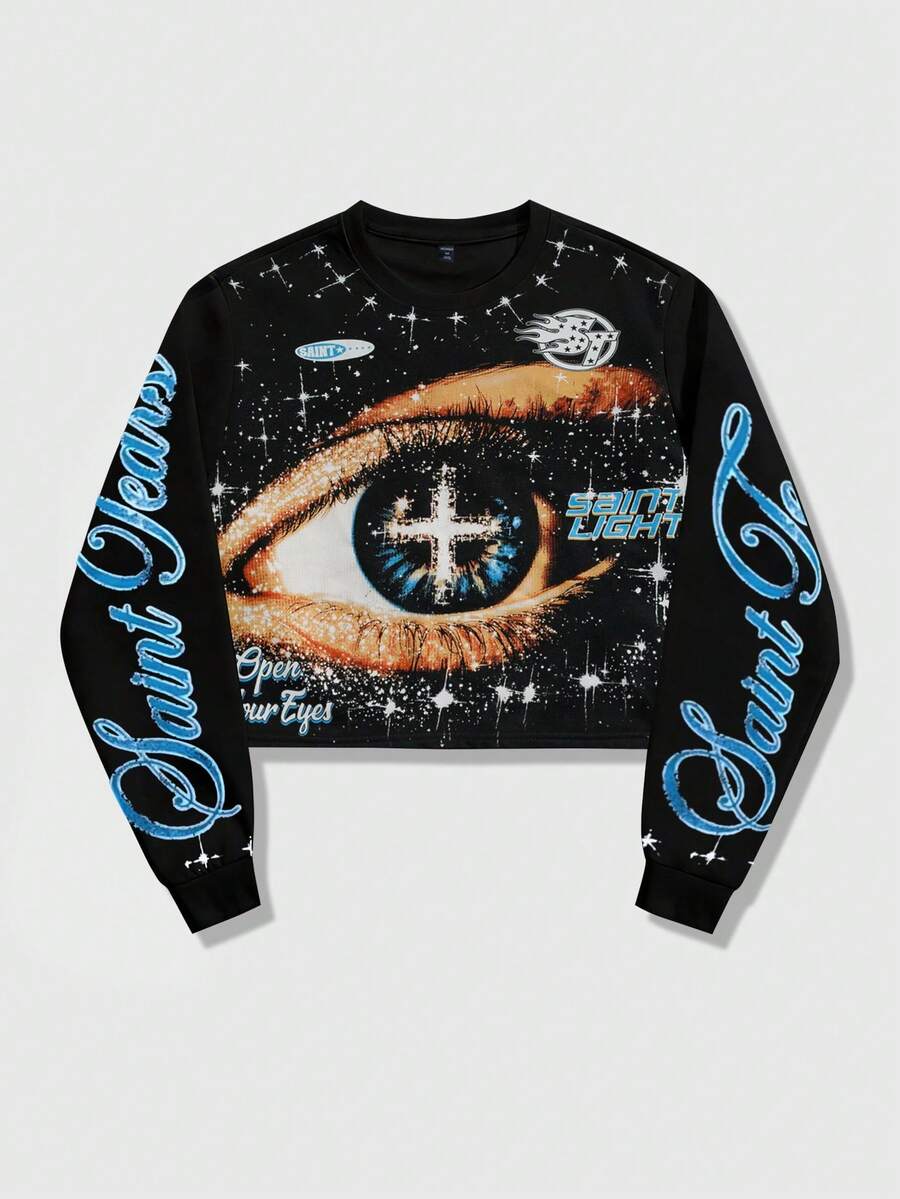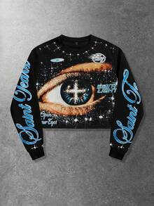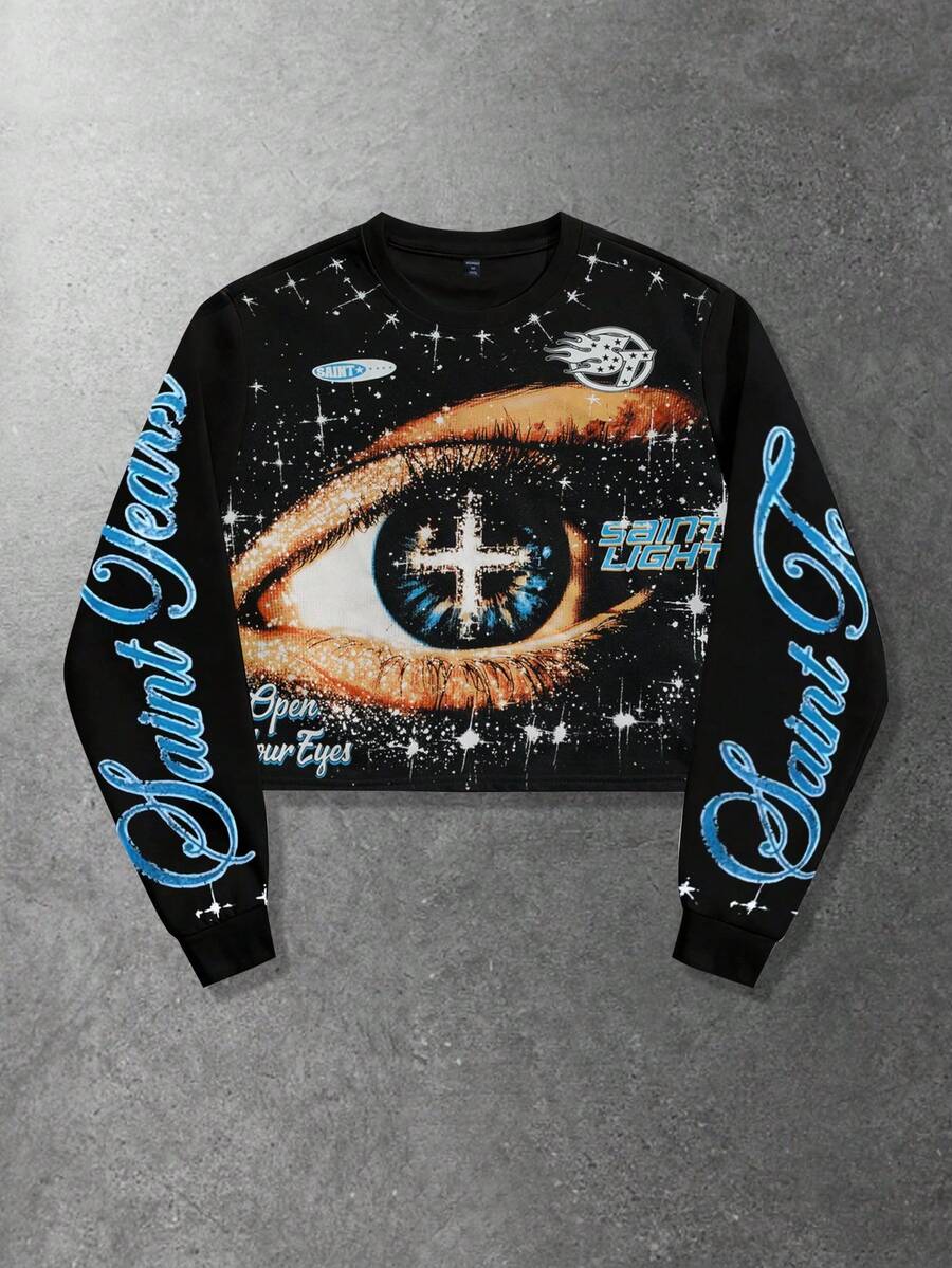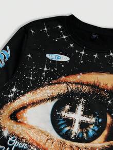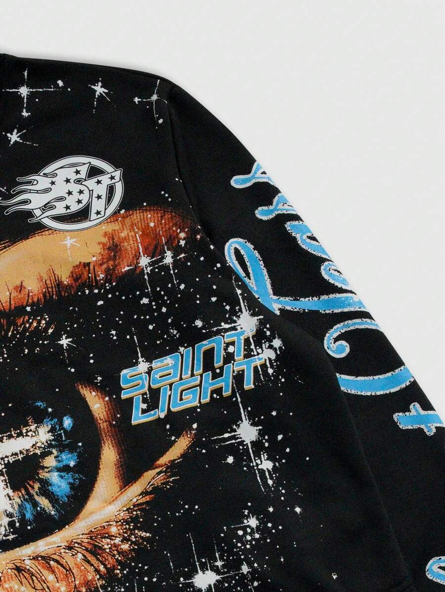 Street Life Unisex Casual Drawstring Long Sleeve Top, Street Style Graphic Print Crew Neck T-Shirt
