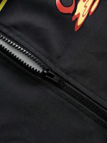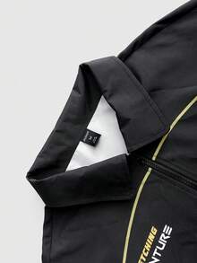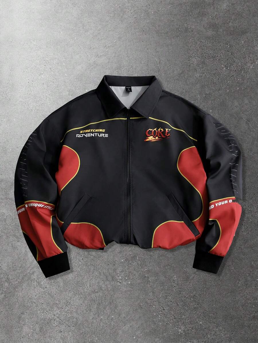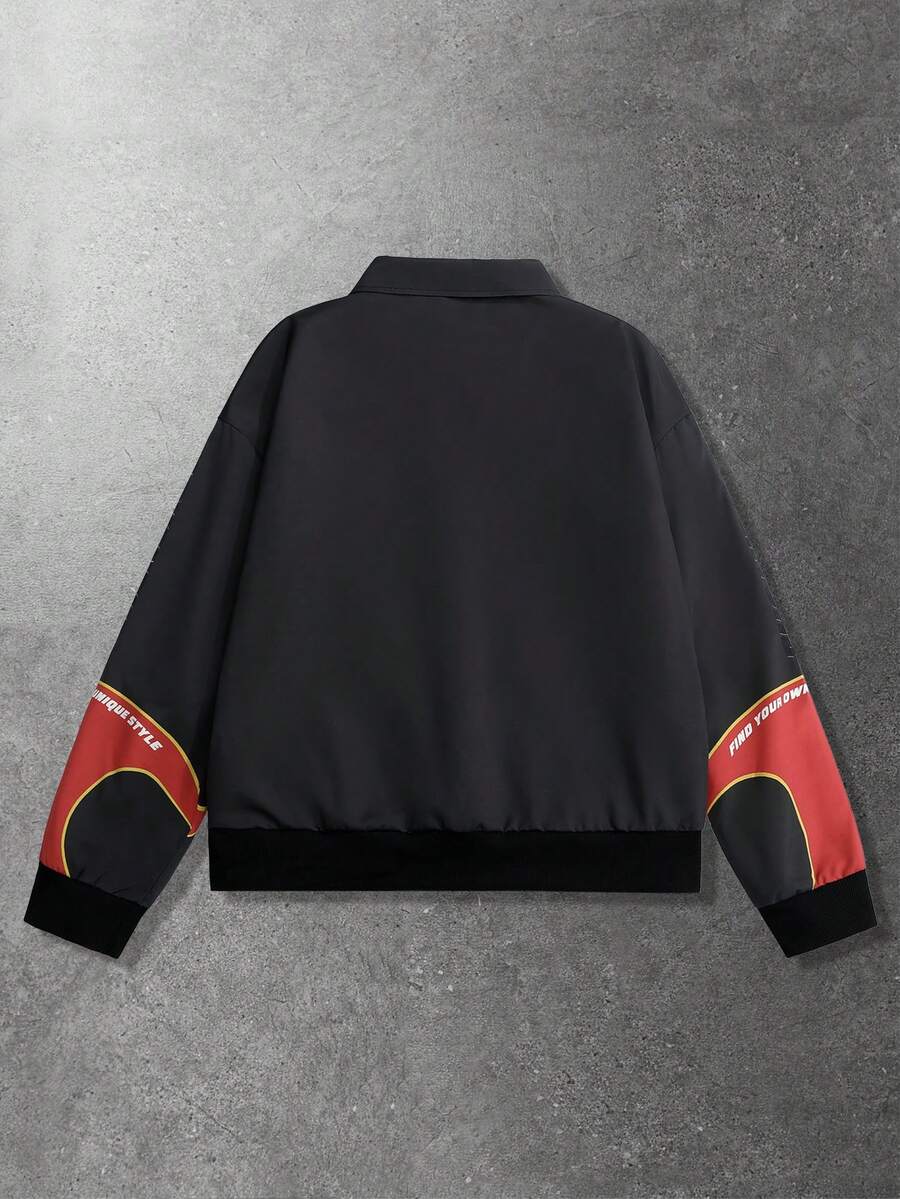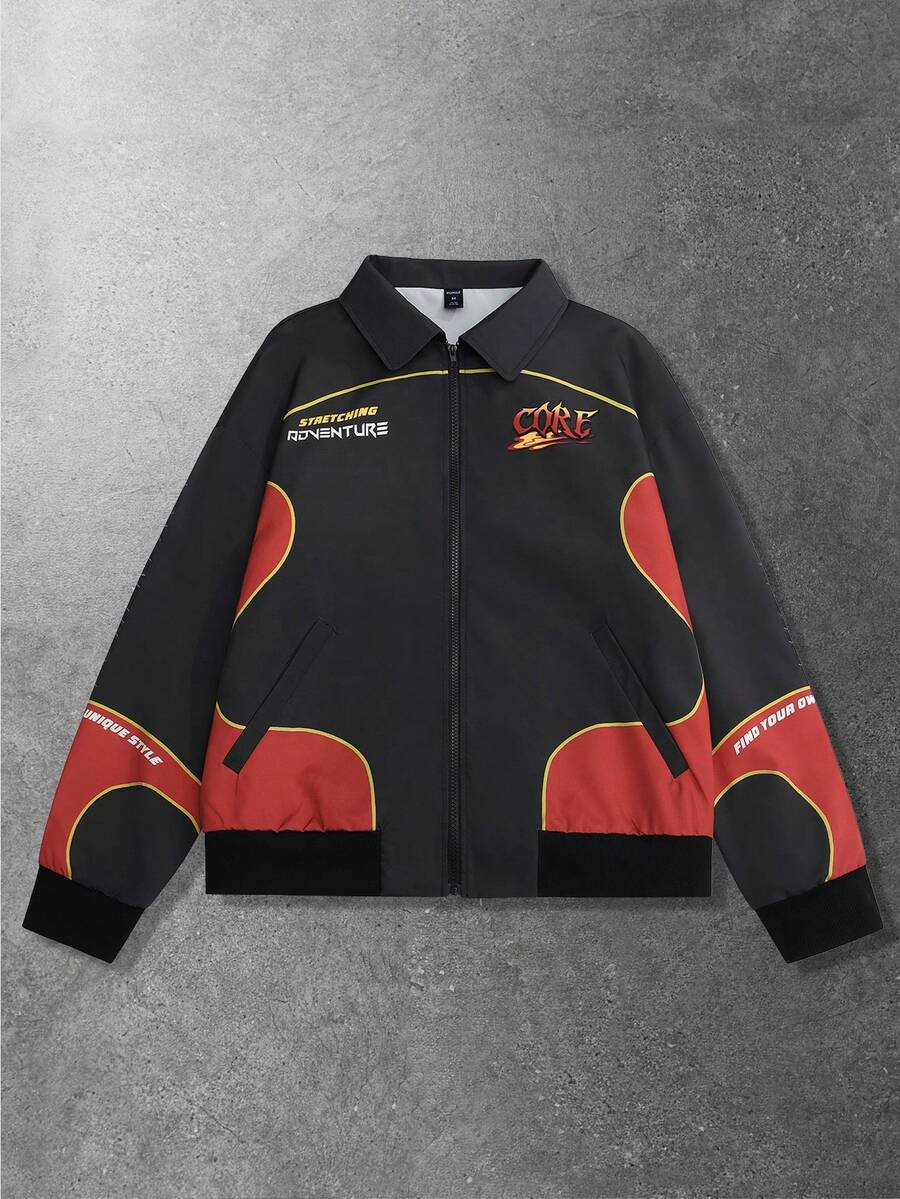 Street Life Unisex Racing Long Sleeve Jacket With English Print, Casual Motorcycle Jacket For Autumn/Winter