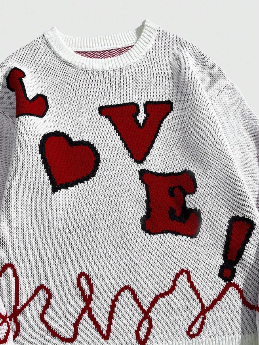 Street Life Valentine/Love/Couples/Heart/XOXO/Kisses/Hugs And Kisses/Be Mine/Babe/Baby/Kiss/Lip/Heart/Cupid/Angel/Rose/Smile/Butterfly/Cherry/Strawberry/3D Rose/Flower/Bow Print Unisex Pullover Sweater, Casual For Valentine's Day