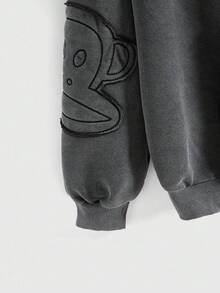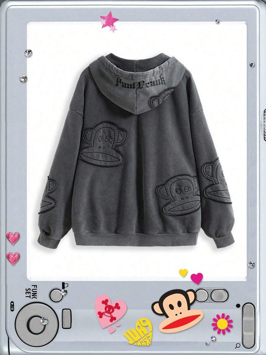 Paul Frank X ROMWE Street Subculture Vintage Washed Embroidered Loose Women Zip Up Sweatshirt
