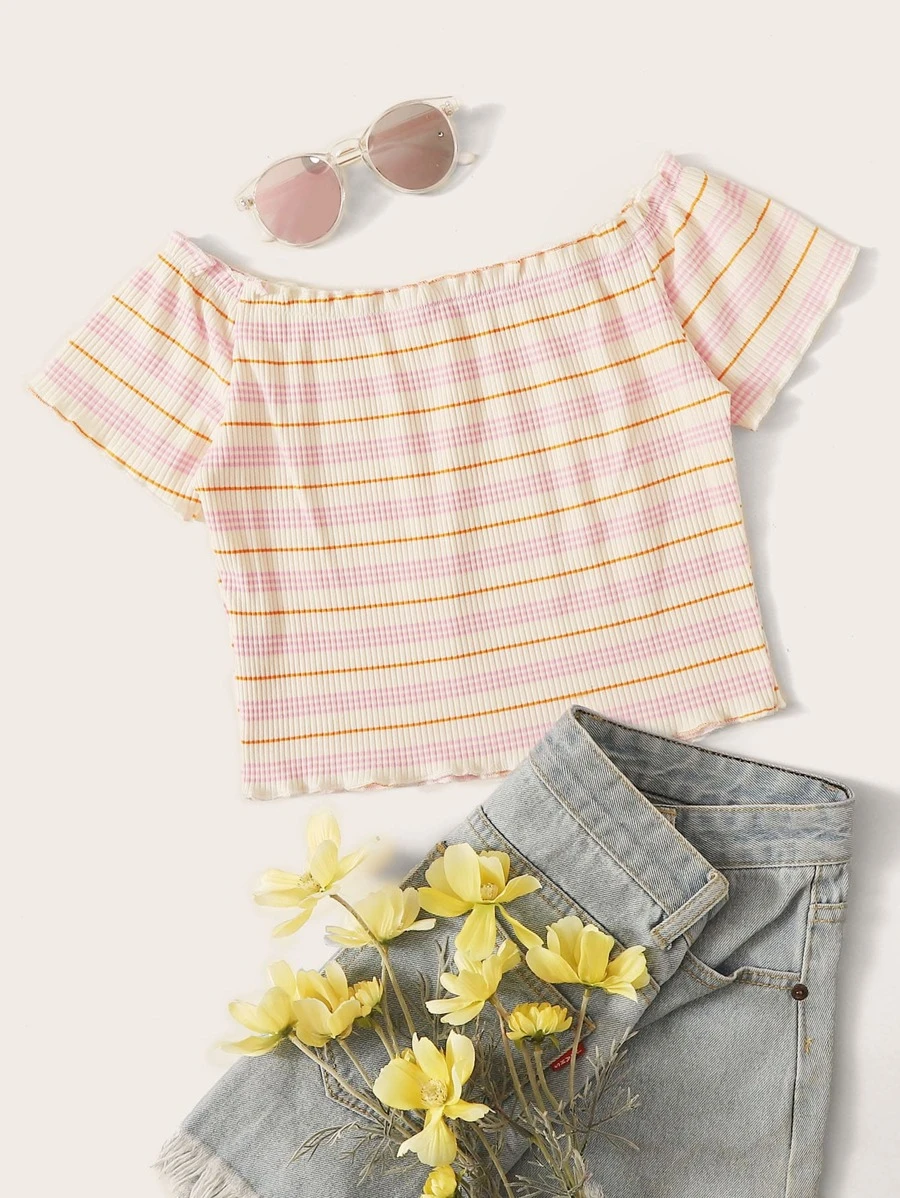 Striped Lettuce Trim Bardot Tee
