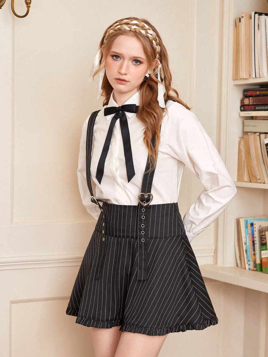 Striped Print Suspender Skirt