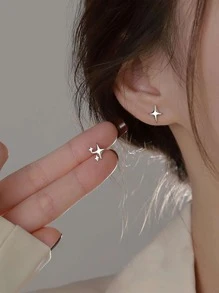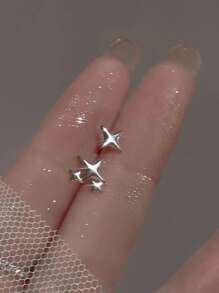 1pair Creative Zinc Alloy Star Design Stud Earrings For Women For Daily Decoration