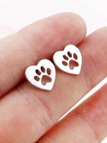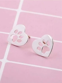 1pair Fashionable Stainless Steel Paw Detail Heart Stud Earrings For Women For Daily Decoration