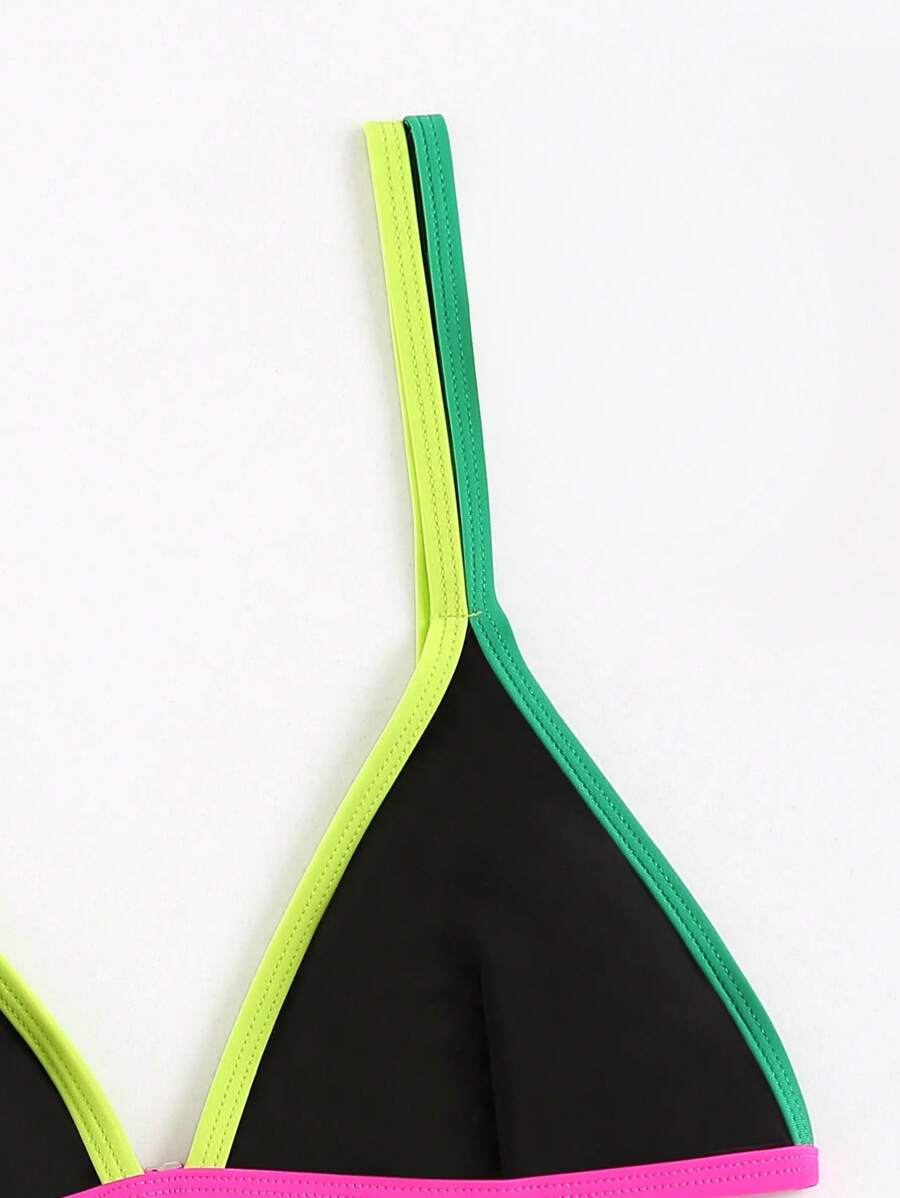 Summer Beach Contrast Neon Trim Triangle Bikini Top Bathing Suit