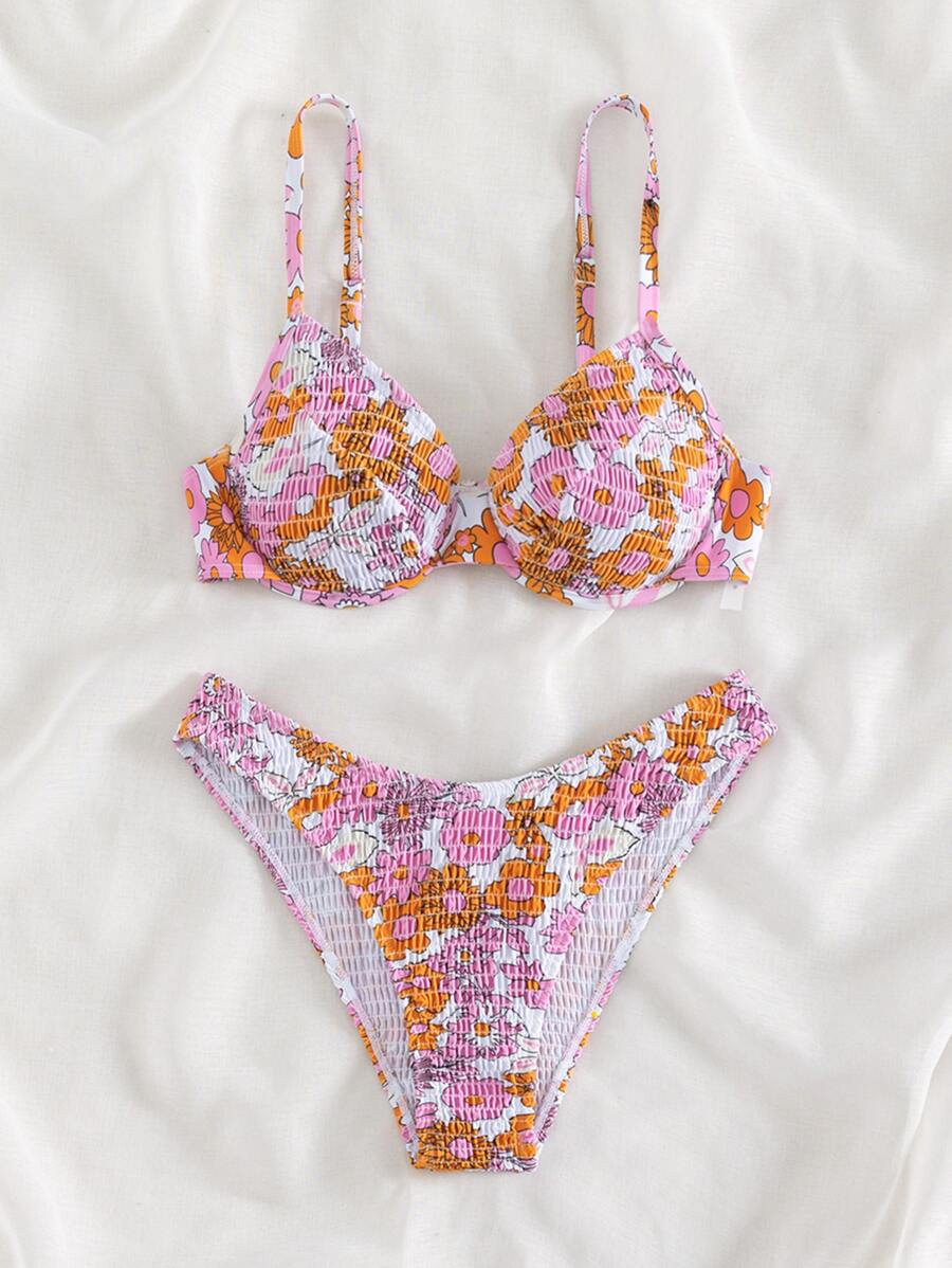 Summer Beach Floral Print Underwire Bikini Set
