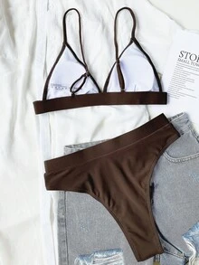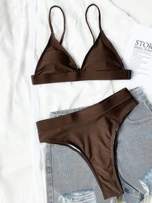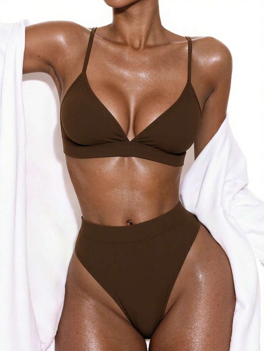 Summer Beach Solid Bikini Set Triangle Bra & High Waisted Bottom 2 Piece Bathing Suit
