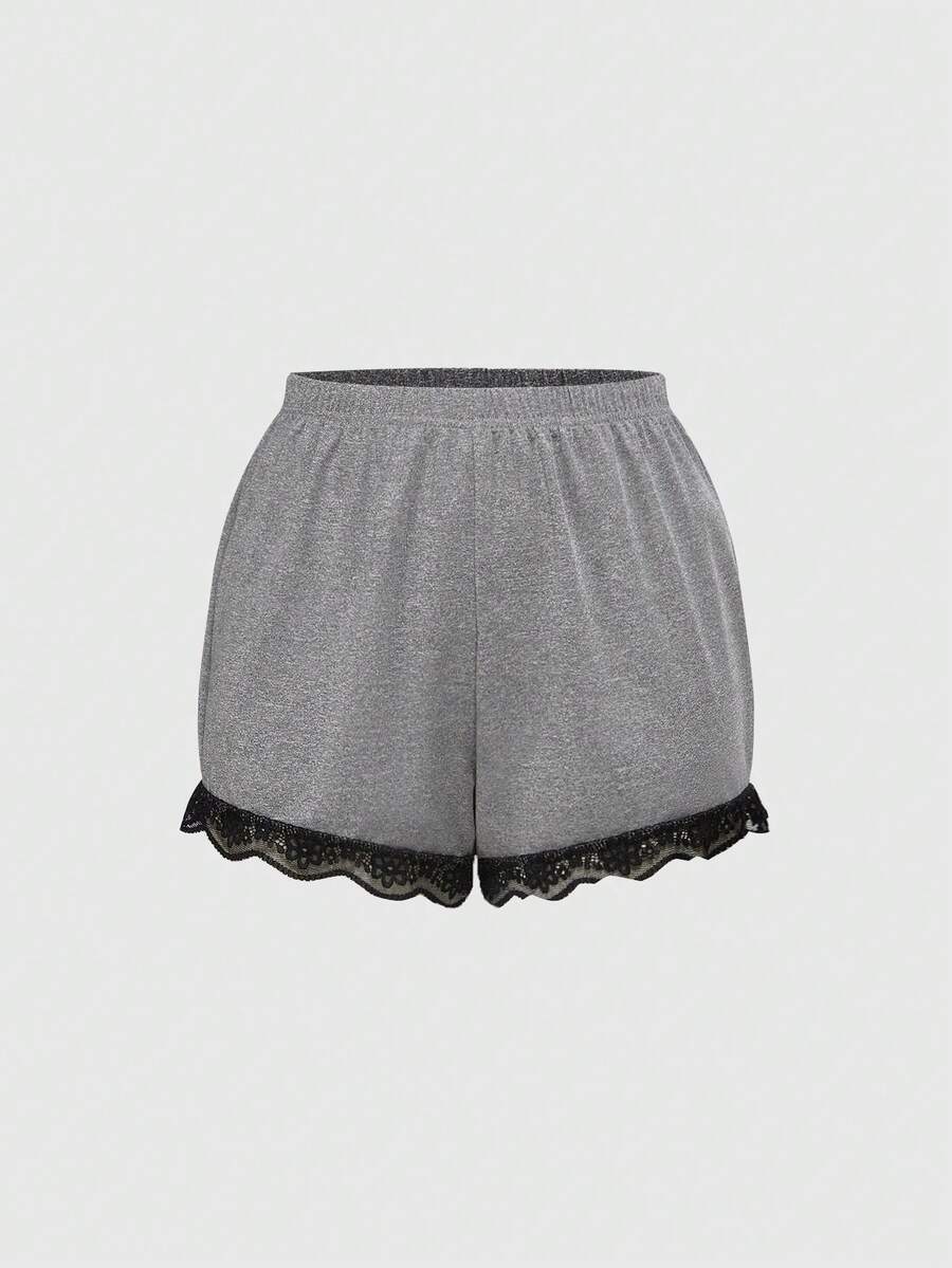 Summer Comfortable Rayon Loose Casual Asymmetrical Neck 2 In 1 Lace Patchwork Women Short Sleeve & Shorts Pajama Set