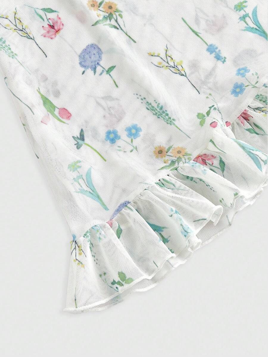 Sweetness Summer Floral Ruffle Hem Sexy Nightgown Sets For Women