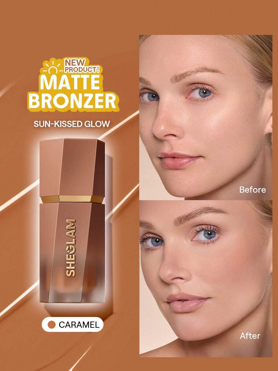 Sun Beam Matte Liquid Bronzer-Caramel Bronzer Liquid Non-Greasy Long Lasting Natural Matte Bronzer Bronzing Weightless Contour Brand Beauty Makeup Face Paint Cosmetic For Women Girls Perfect For Winter Spring Ideal For Y2K Fancy Fashion Suitable For Birthday Valentine'S Day Gift Rave Party Ready Best Color