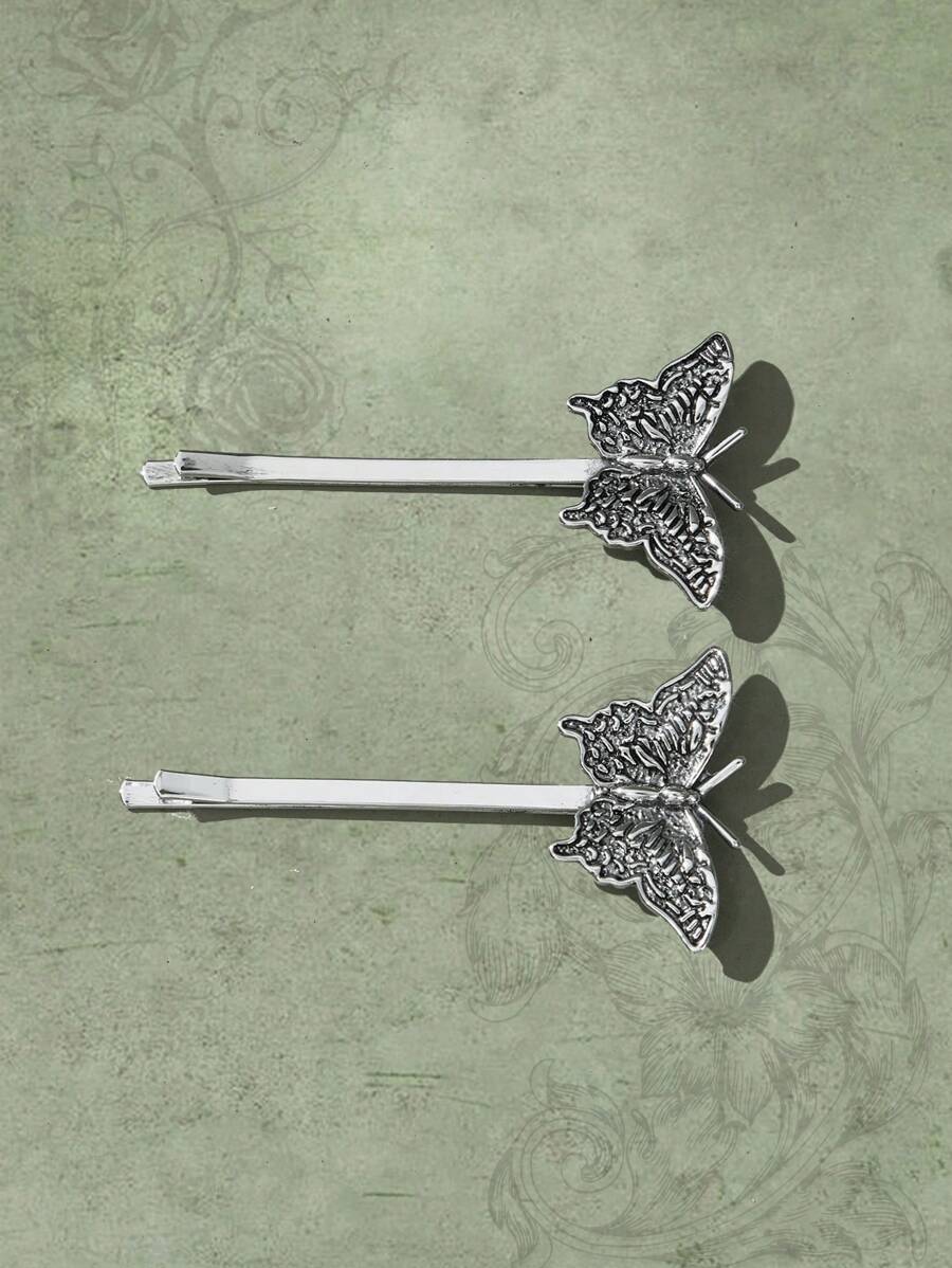 Sweetness 2pcs Women Butterfly Decor Zinc Alloy Hair Clip