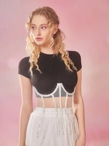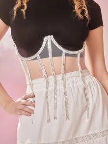 Sweetness Rhinestone Fringe Decor Corset Belt