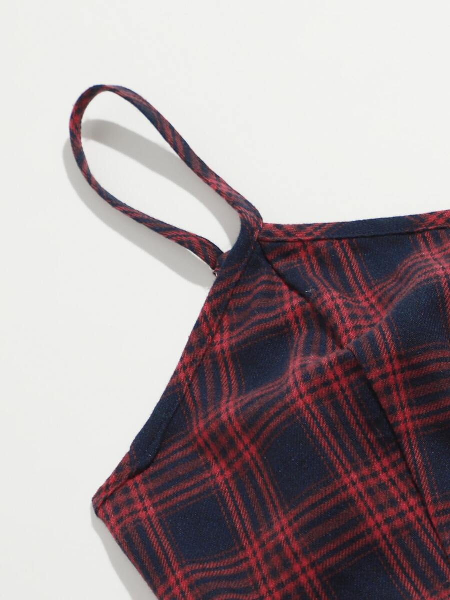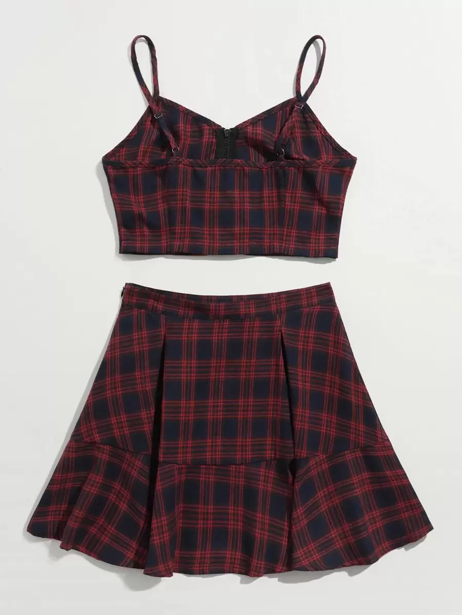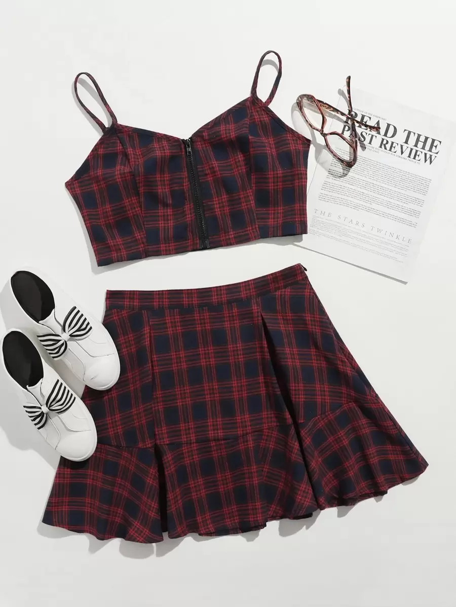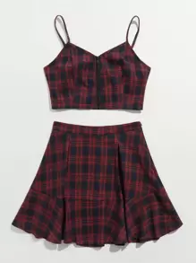 Tartan Zip Up Crop Cami & Skirt