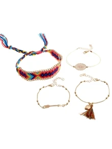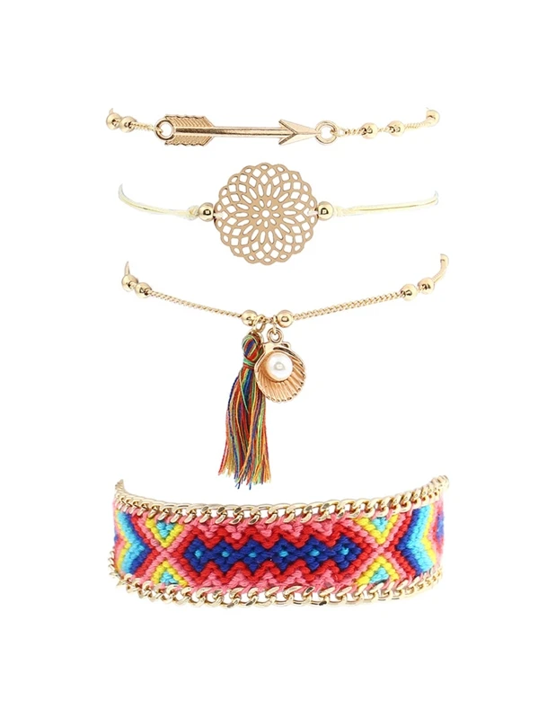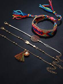 Tassel & Shell Charm Chain Bracelet 4pcs