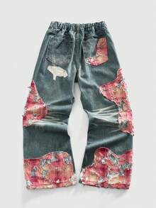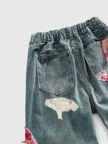Teenage Boy Casual Loose Fit Pockets Embroidered Wide Leg Jeans