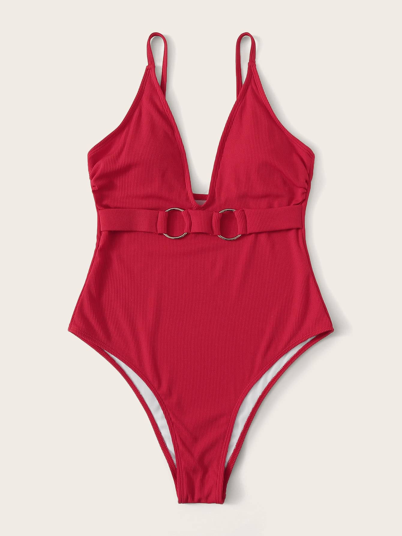 Textured O-ring Front V Neck Cami Swimsuit