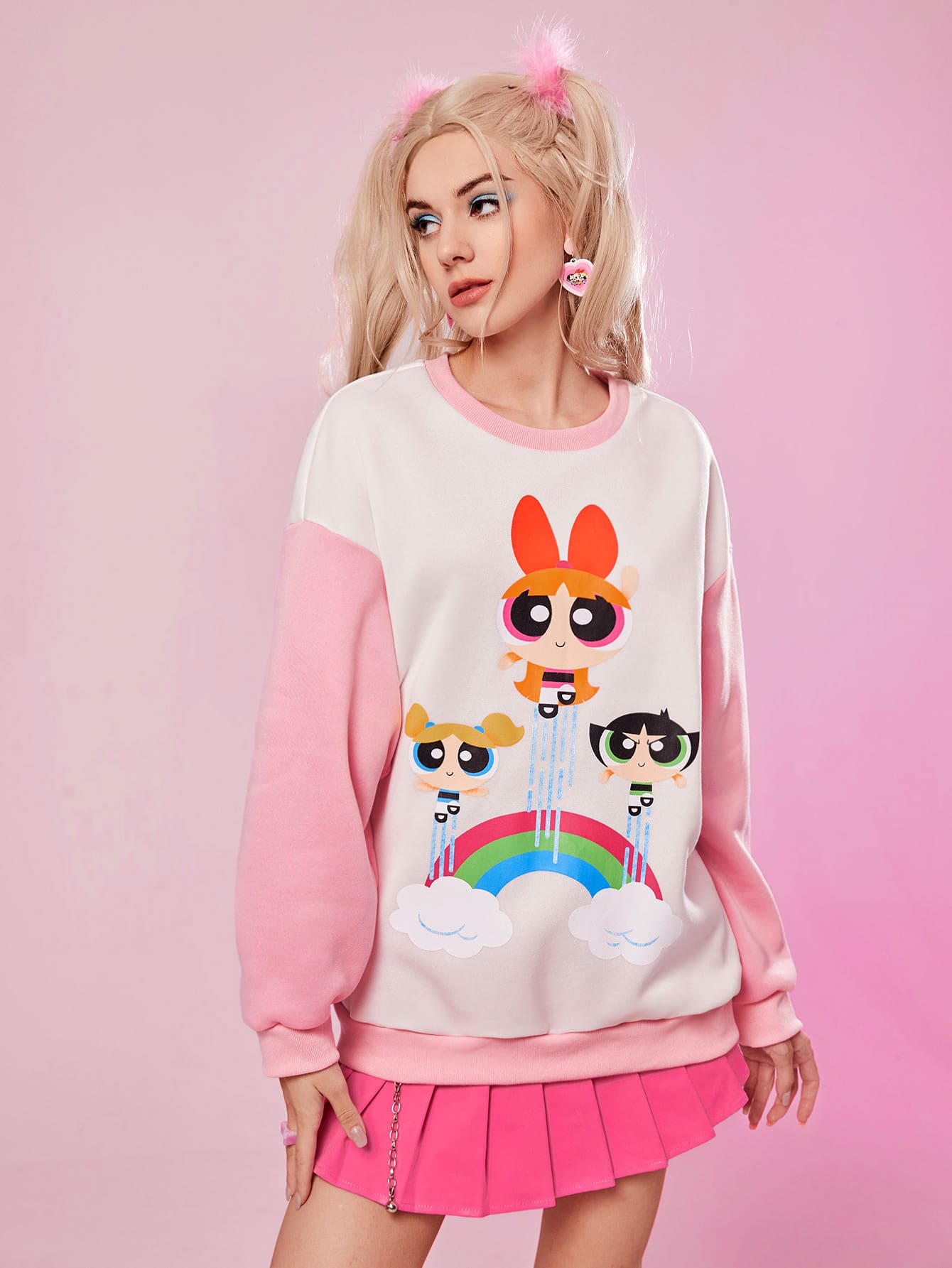 The Powerpuff Girls | ROMWE Cartoon Graphic Drop Shoulder Sweatshirt