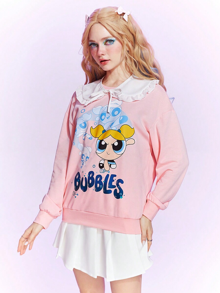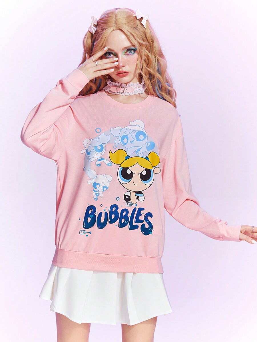 The Powerpuff Girls | ROMWE Cartoon & Letter Graphic Drop Shoulder Sweatshirt