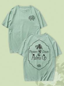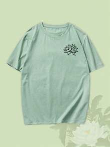 The White Lotus Men's Lotus Flower Pattern Short Sleeve T-Shirt, Casual Summer Stylish Brand, Green Color