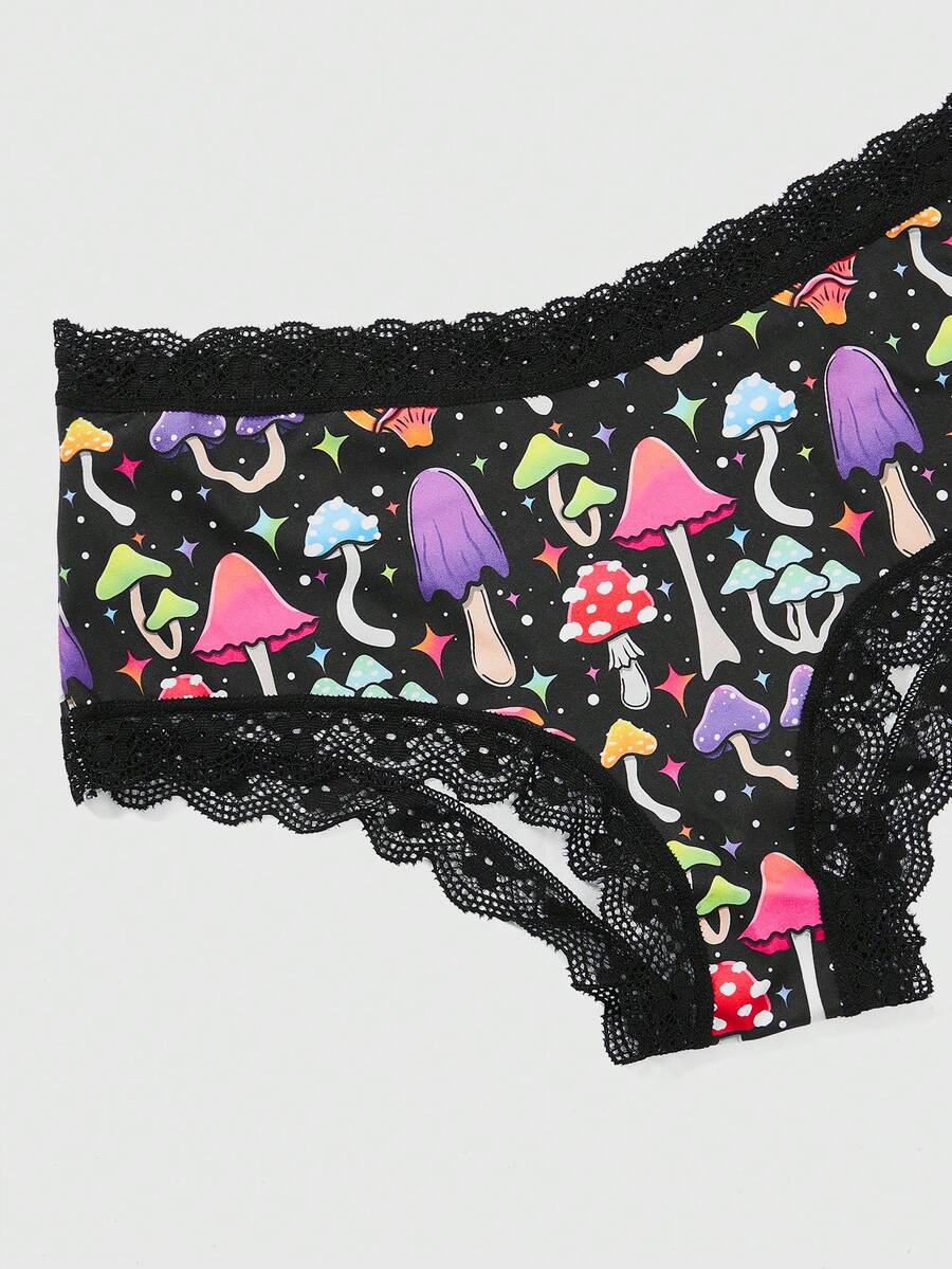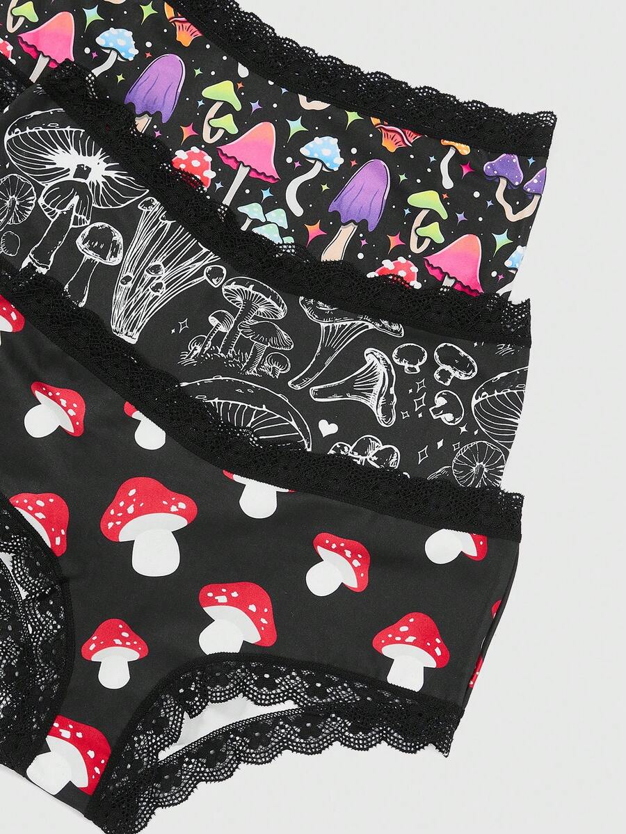 ThisUniqueVibe 3pcs Mushroom Print Contrast Lace Brief