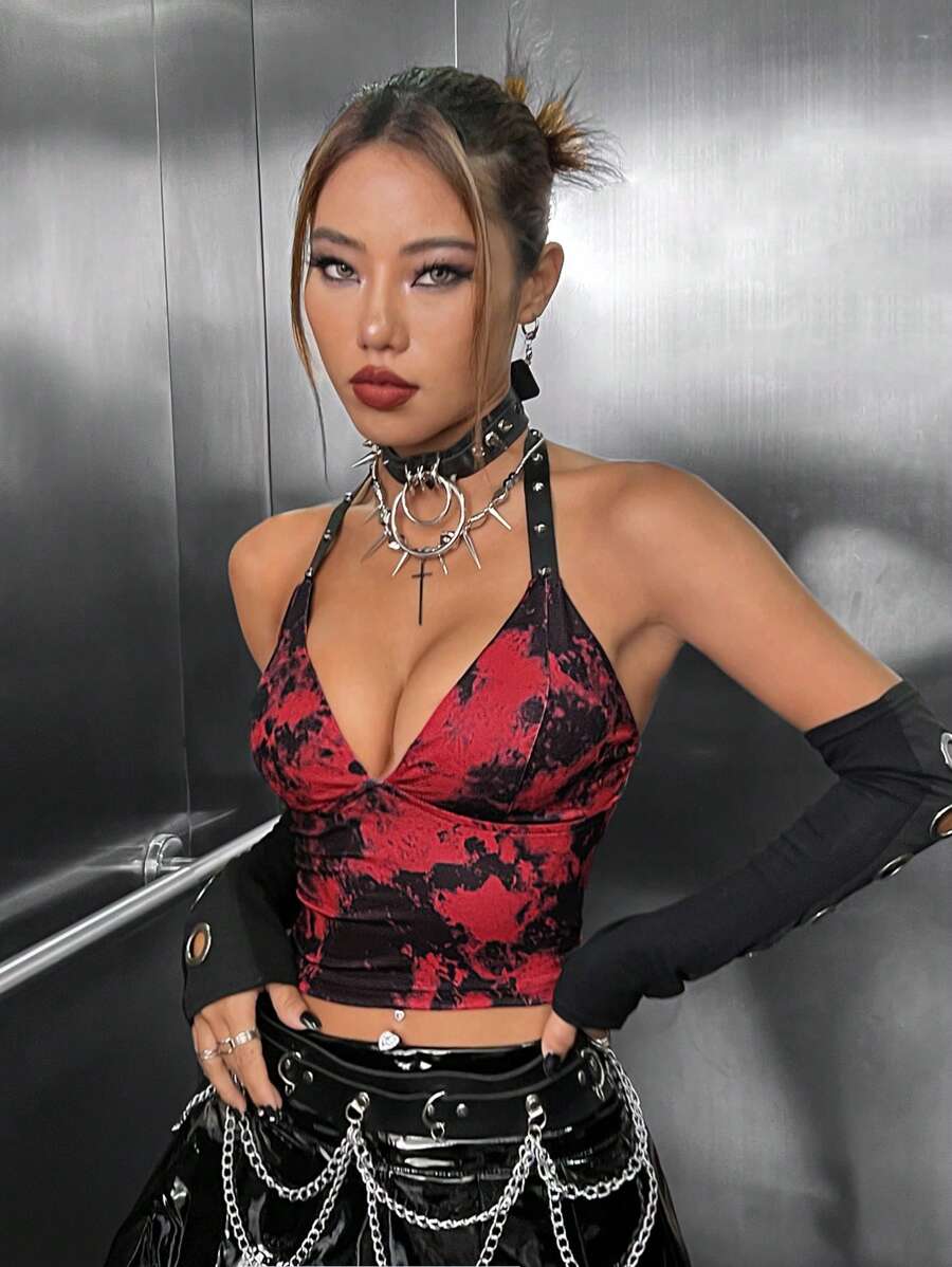 Tie Dye Backless Halter Top, School