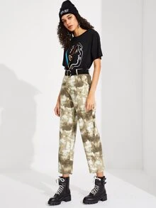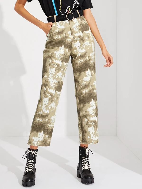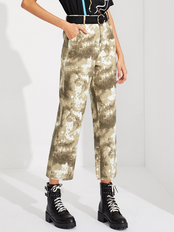 Tie Dye Pocket Straight Leg Crop Pants
