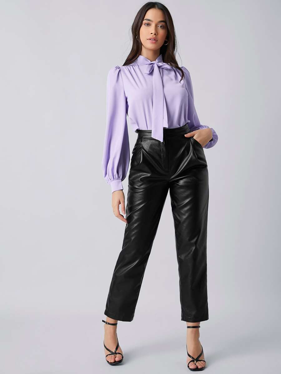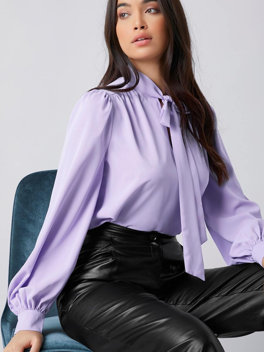 Tie Neck Lantern Sleeve Top