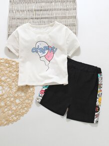 Toddler Boys Balloon & Letter Graphic Tee & Track Shorts
