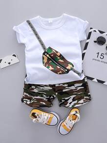 Toddler Boys Camo And Letter Graphic Tee With Shorts