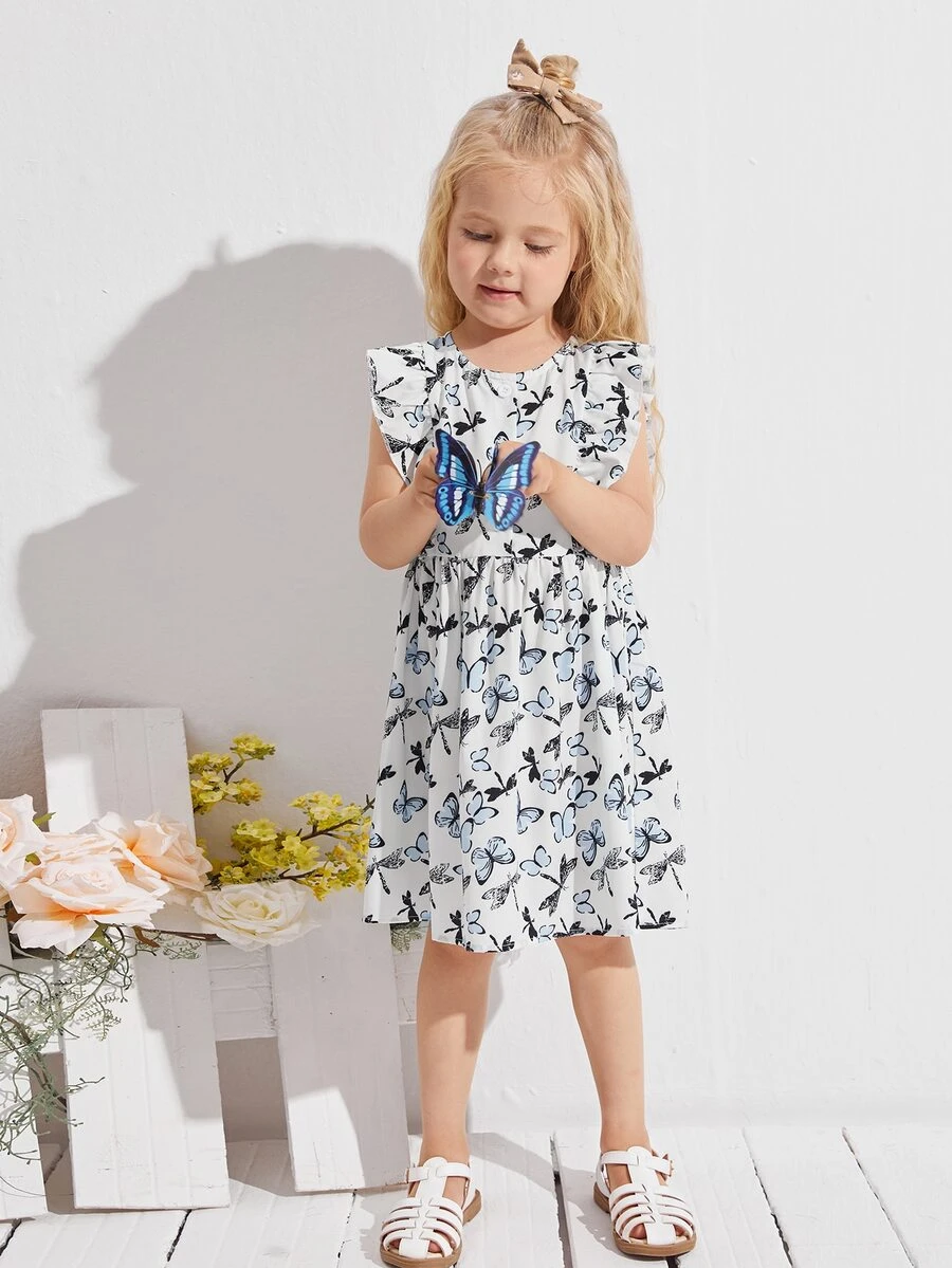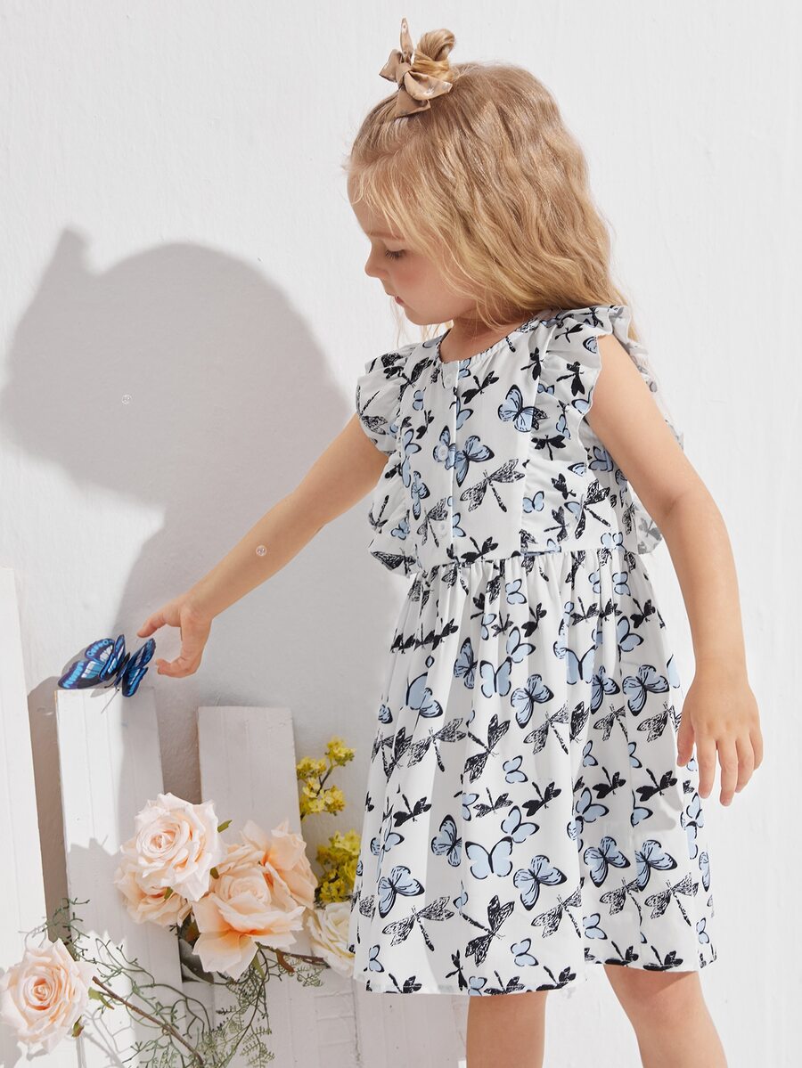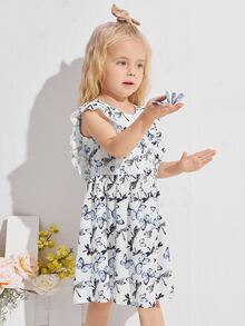 Toddler Girls Butterfly Print Ruffle Trim Dress