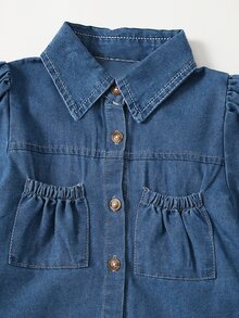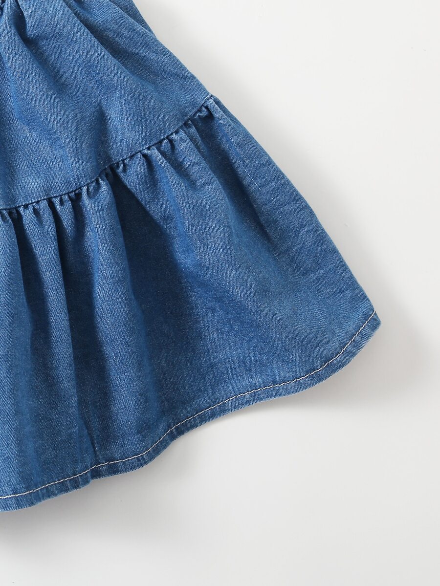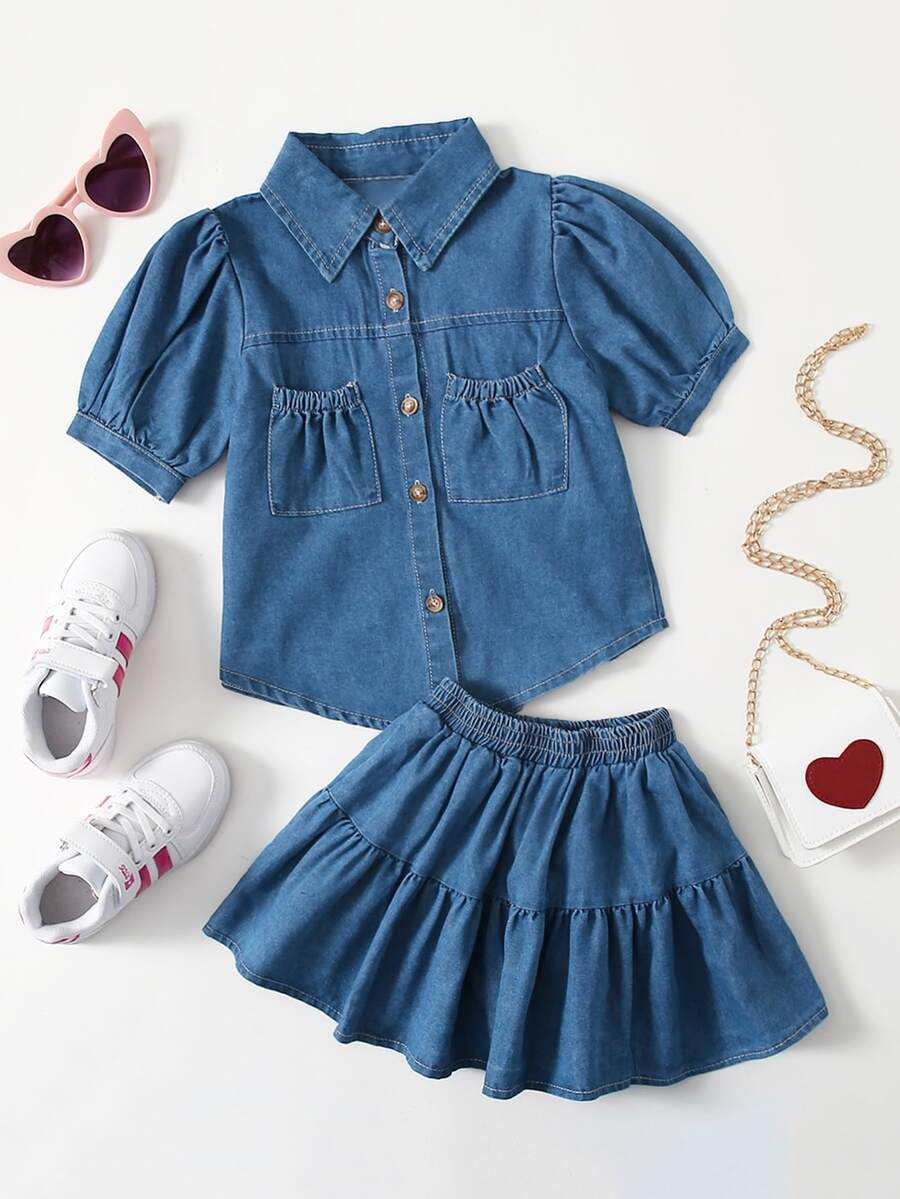 Toddler Girls Puff Sleeve Denim Top & Skirt