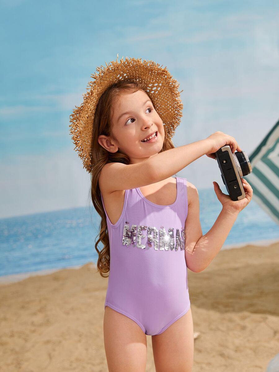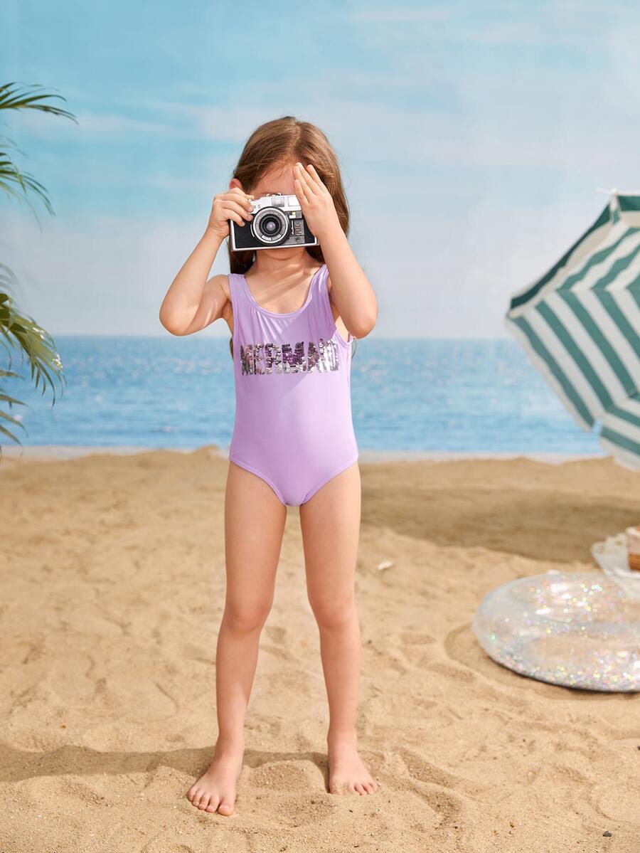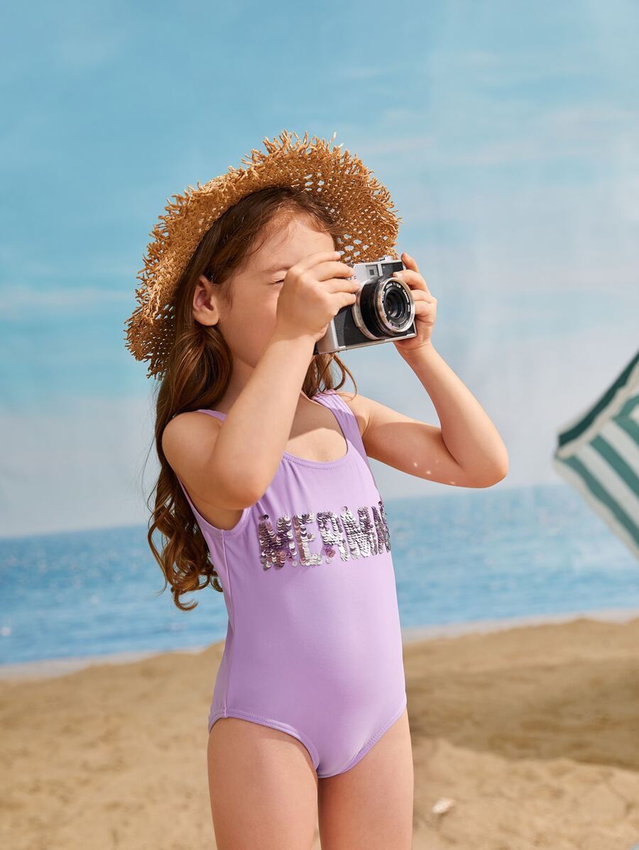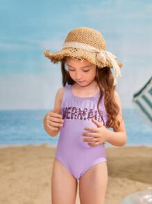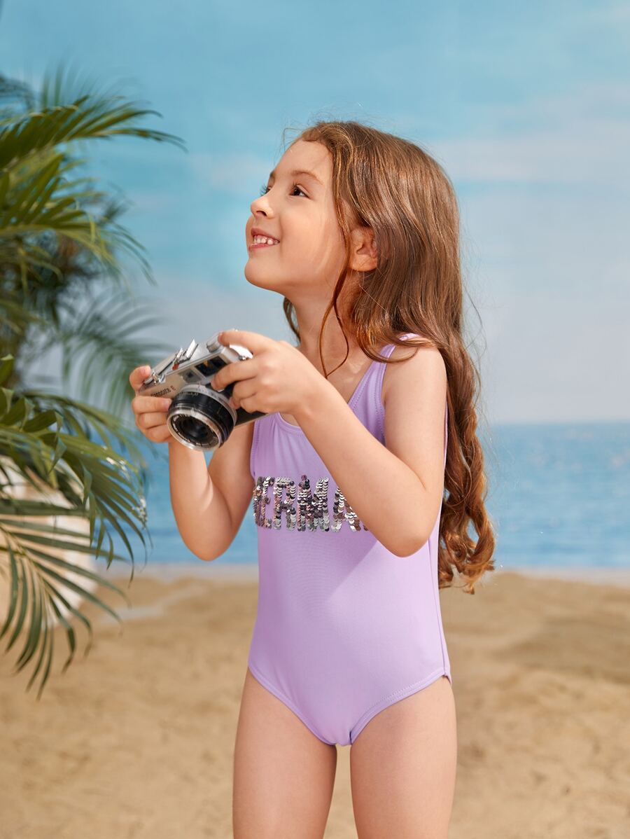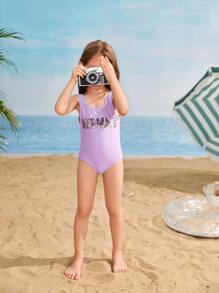 Toddler Girls Sequin Letter One Piece Swimsuit