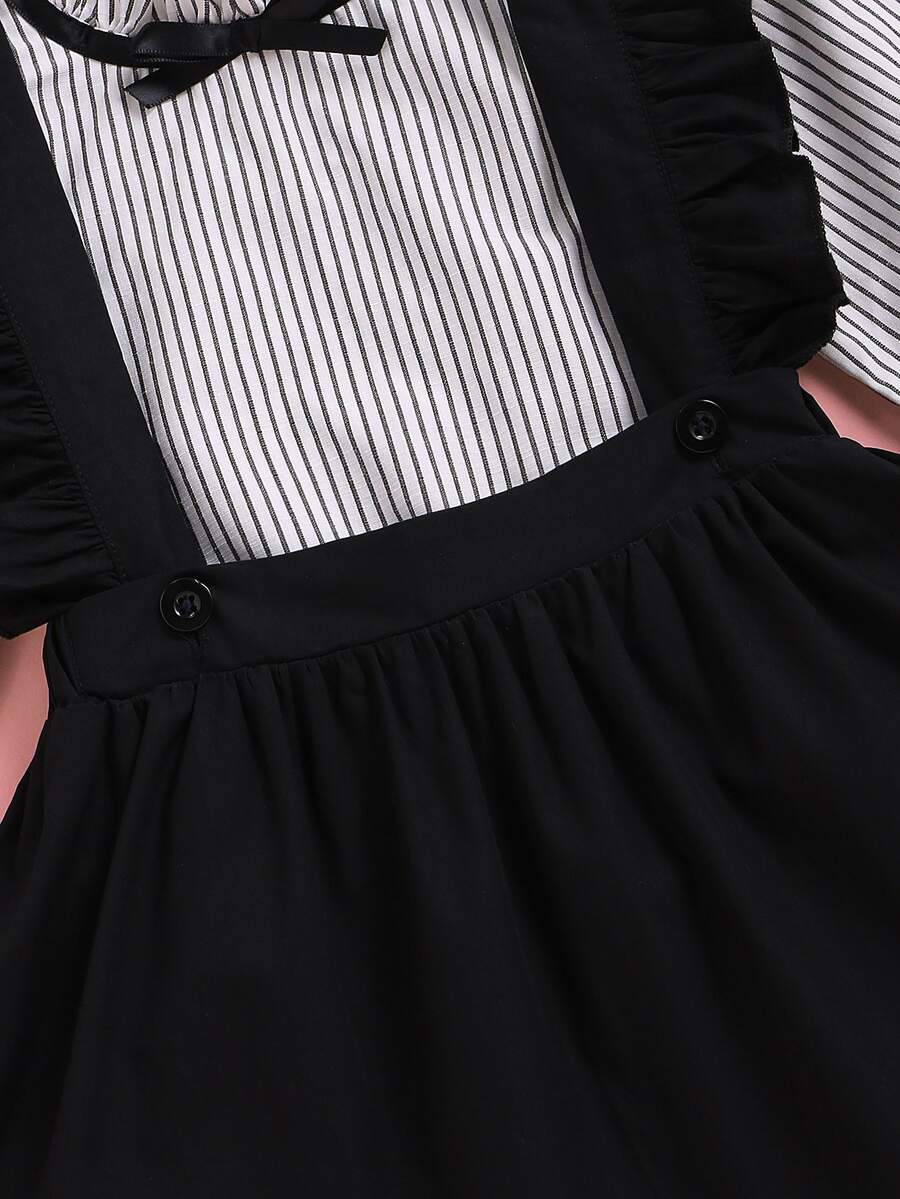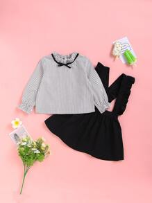Toddler Girls Striped Frill Blouse With Ruffle Pinafore Skirt