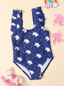 Toddler Girls Unicorn Print One Piece Swimsuit